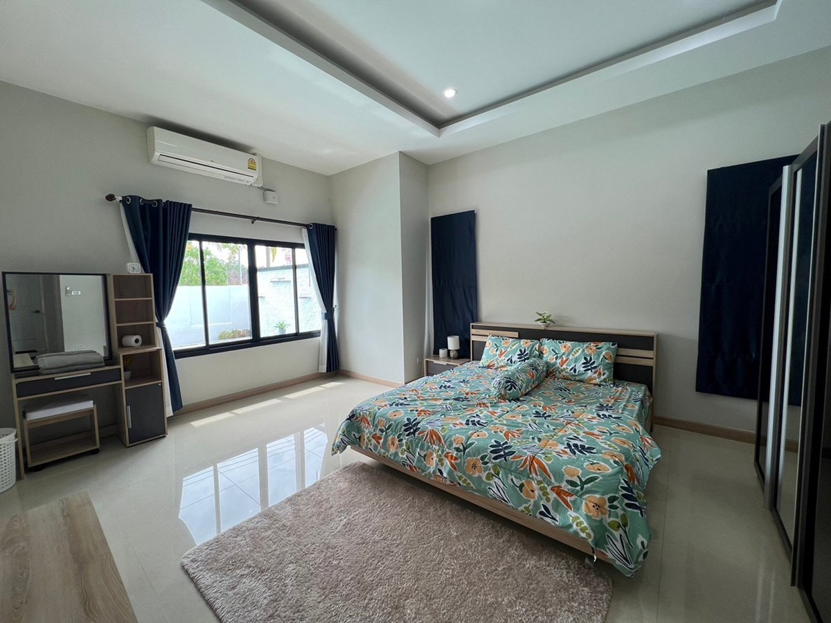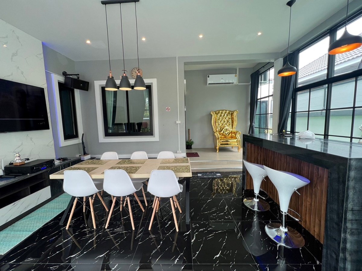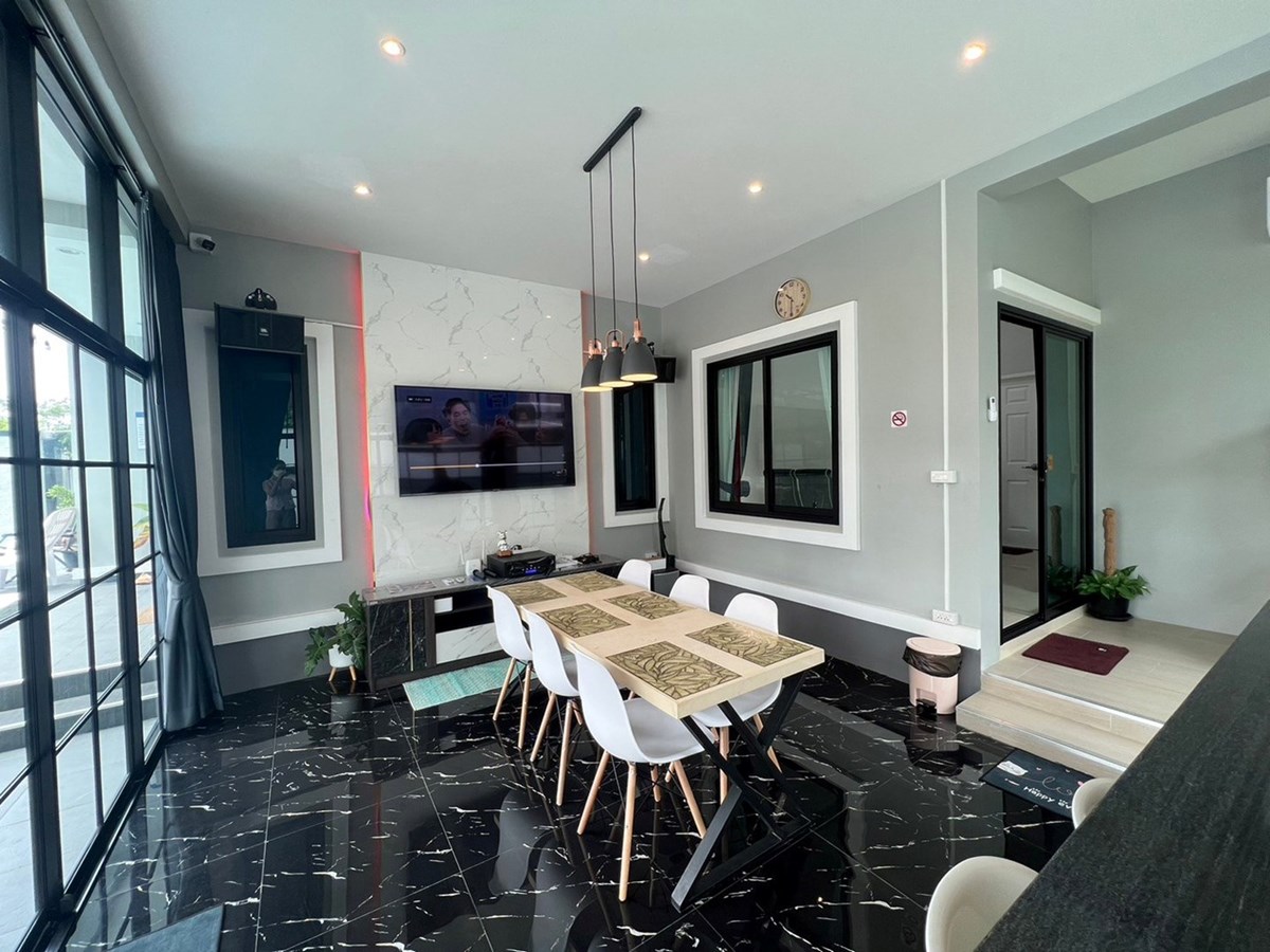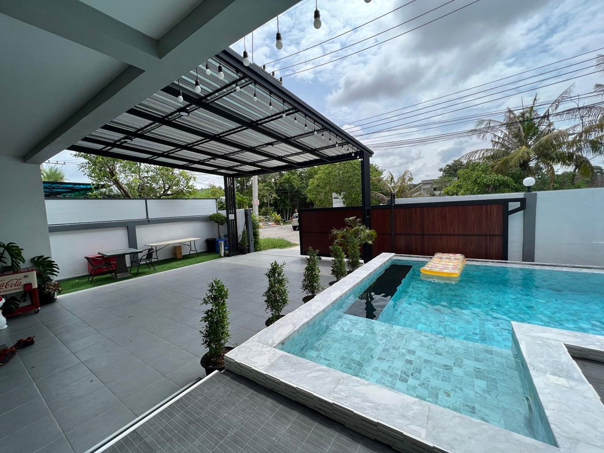 4 bedrooms house near Ponthep Garden View 8, fully furnished with very high standards and decorated tastefully to make it a nice home, 4 bathrooms, European Kitchen, 24 hour manned security, Private pool. Located in East Pattaya on Soi Chaipornvitee close to the Maprachan lake area, quiet surroundings