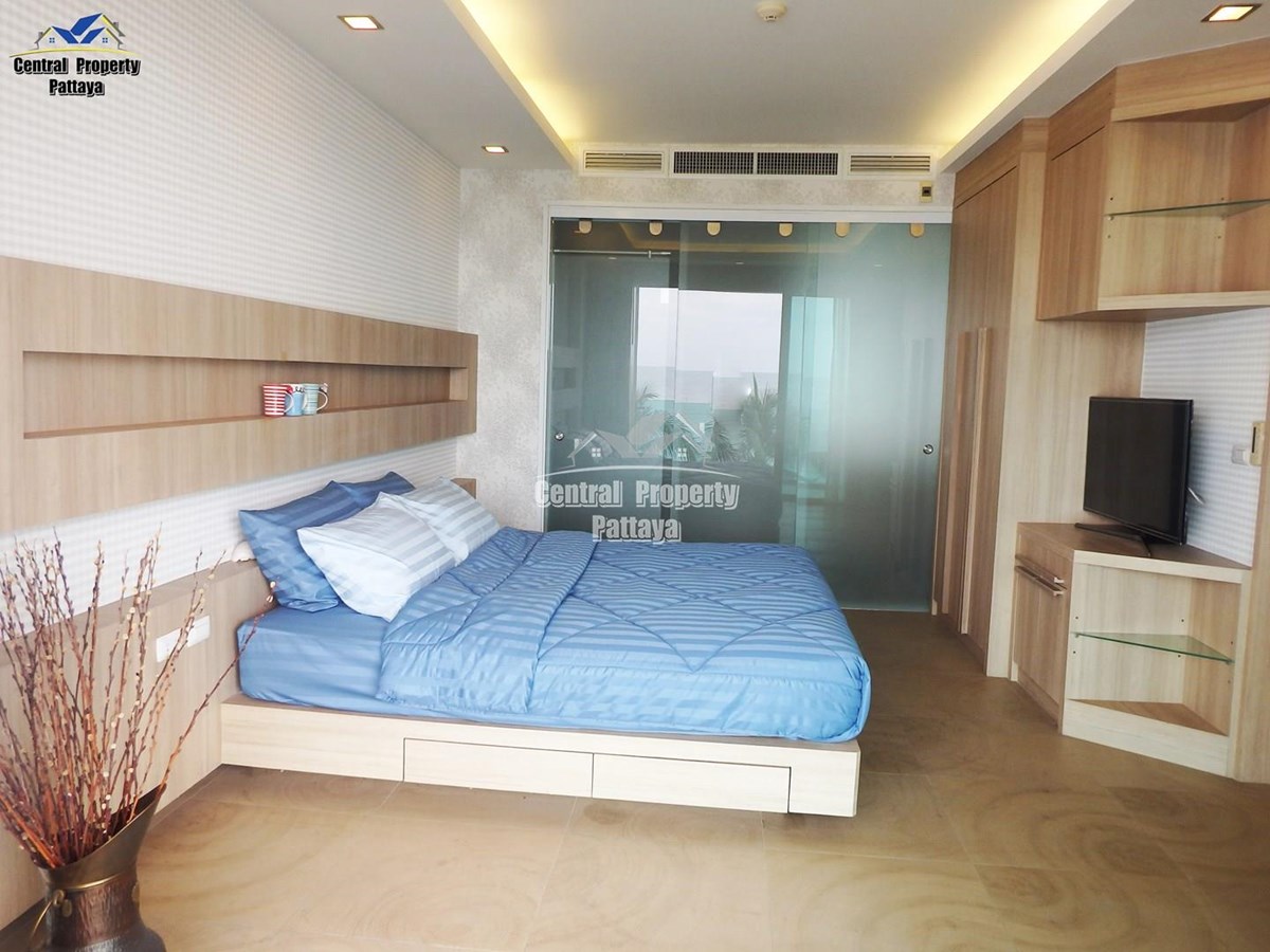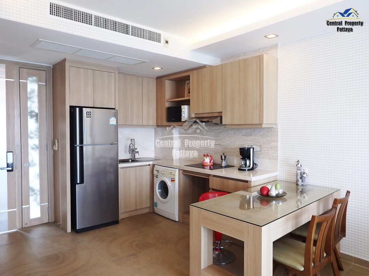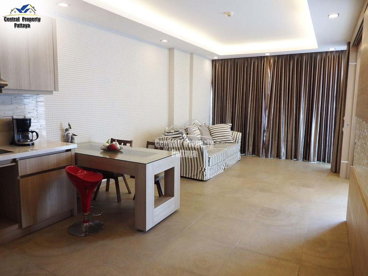 Sophisticated 1bedroom condo in the beachfront Paradise Ocean View resort development in Bang Lamung. Featuring a large bedroom, a fully equipped European kitchenette, and a stylish bathroom, this fully furnished, modern, contemporary unit has high specification finishes, built in wardrobes, and quality appliances.