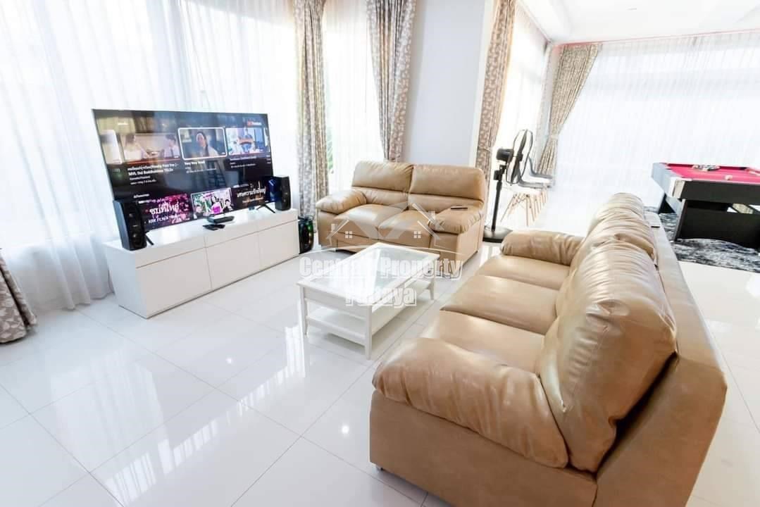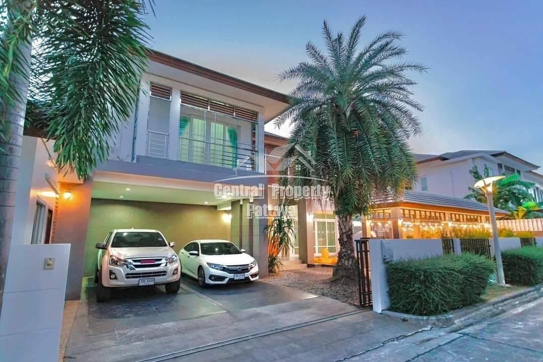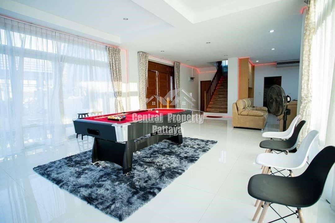 A stunning 4 bedroom, 6 bathroom, beachfront house with large private pool for sale in Thai/company name centrally located in Bang Lamung. This home has been recently renovated to a very high European standard and is fully furnished, including storage, built-in wardrobes, and a large family kitchen as well as a billiards room which could be used as additional living or office space. The bathrooms are modern and spacious and there is also a substantial salah/hosting area. As well as the stunning private pool with jacuzzi and a beautiful pool deck this house also has an al-fresco living area which is perfect for entertaining, as well as private parking and a substantial maintenance-free garden.