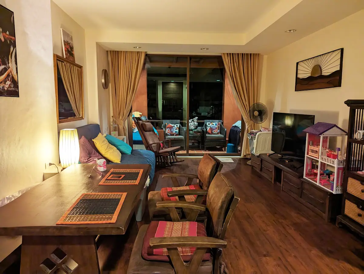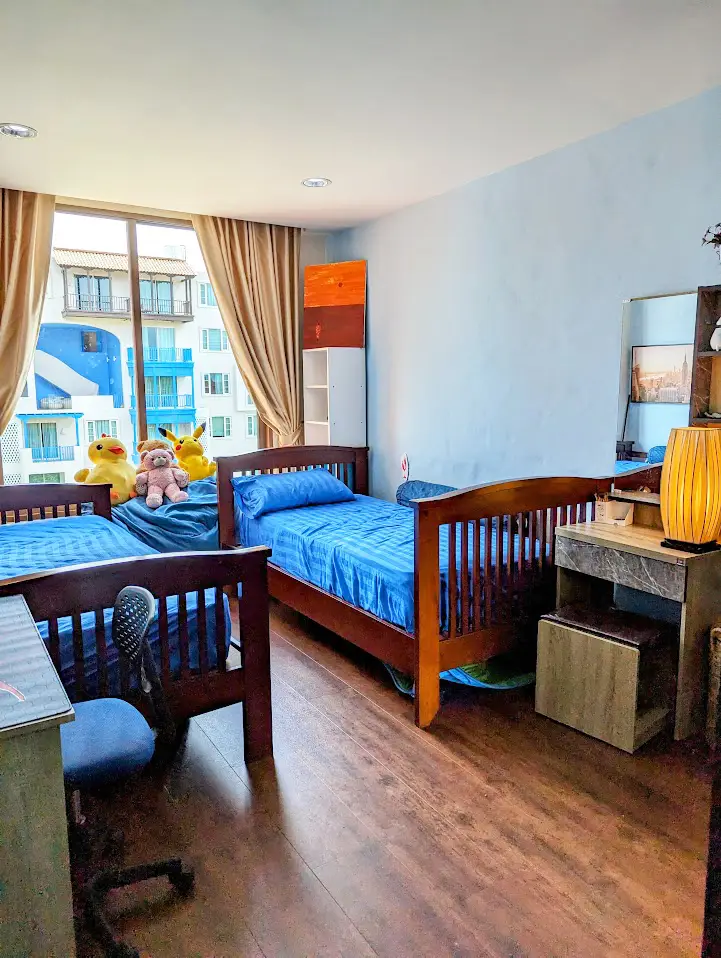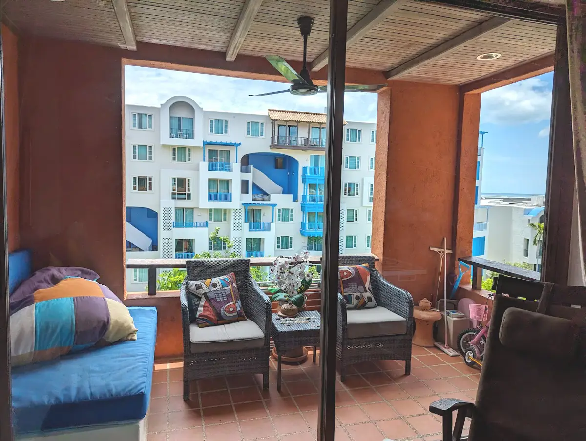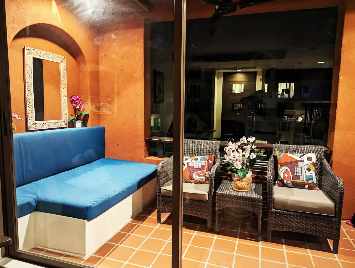 Discover your dream home at Las Tortugas Condo, a vibrant and colorful Mexican Caribbean-inspired condominium nestled in the serene locale of Nong Kae, Hua Hin. Perfect for families seeking tranquility and privacy, this fully furnished 2-bedroom, 2-bathroom unit offers a spacious living area of 84 sq.m. With a seaview from a cozy porch and fresh breeze from Khao Tao Beach, it’s an ideal haven for relaxation and comfort.