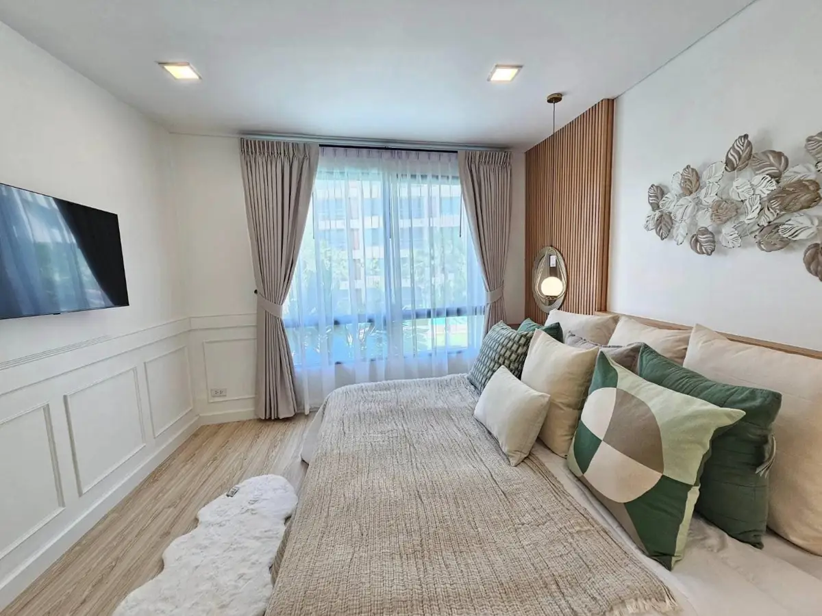 Discover your dream home in the heart of Hua Hin with this beautifully newly renovated beachfront condo. This exquisite 1-bedroom, 1-bathroom residence spans 54.52 sqm and is located on the 2nd floor, offering a serene pool view that will take your breath away. Every inch of this condo has been meticulously designed and decorated to provide a perfect blend of comfort and elegance, making it an ideal sanctuary for relaxation.