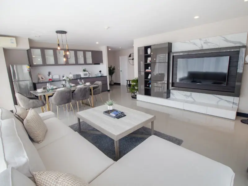 This stunning 3-bedroom, 2-bathroom unit on the 3rd floor, offering panoramic views of Hua Hin cityscape from its balcony, is an ideal choice for both living and investment purposes. Sold fully furnished and decorated, with the flexibility of promotional pricing adjustments, the condo includes access to communal fitness rooms, a swimming pool, and key card access for exclusive floor entry.