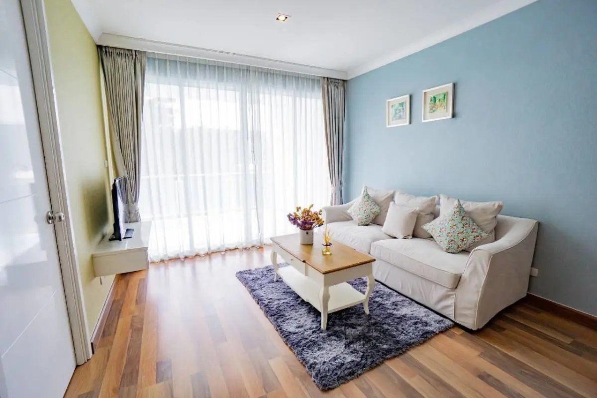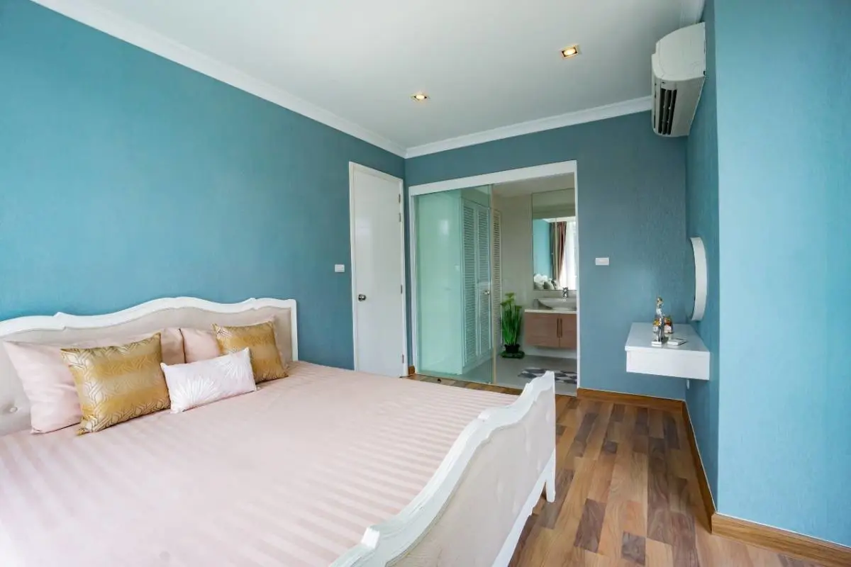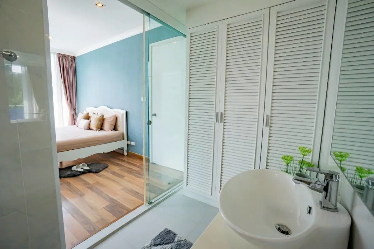With contemporary architecture inspired by the charm of Santorini, this residence stands out with its iconic blue-and-white tones that reflect the sea and sand. Spacious interiors with a practical layout make this condo a perfect holiday home.