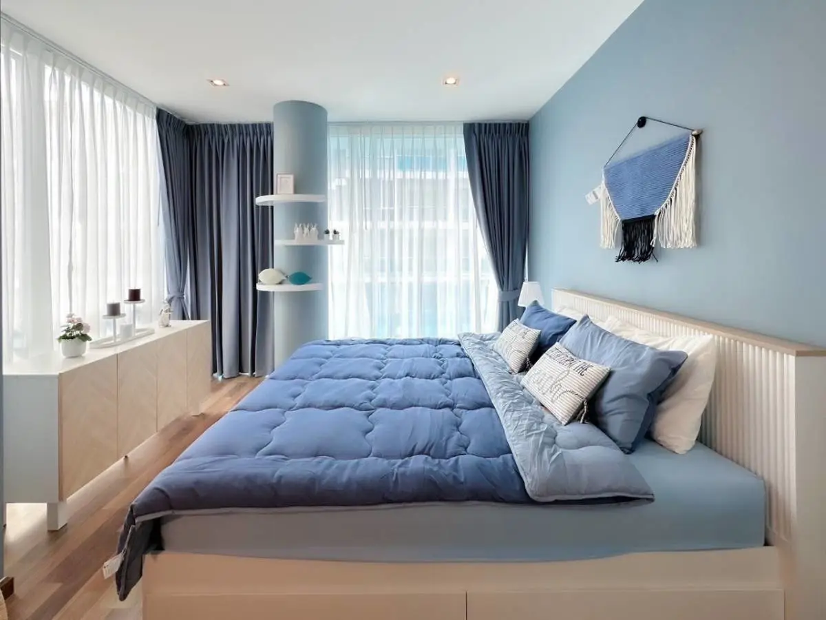 Contemporary architecture Design inspired by Santorini Island Stand out with a blue-white tone, reflects the sea and the sand. A unique vacation condo on a practical usable area.