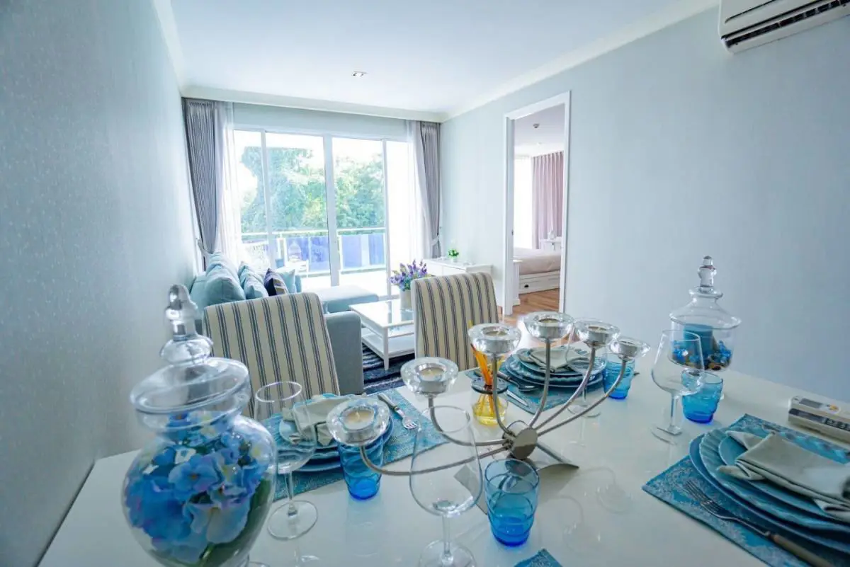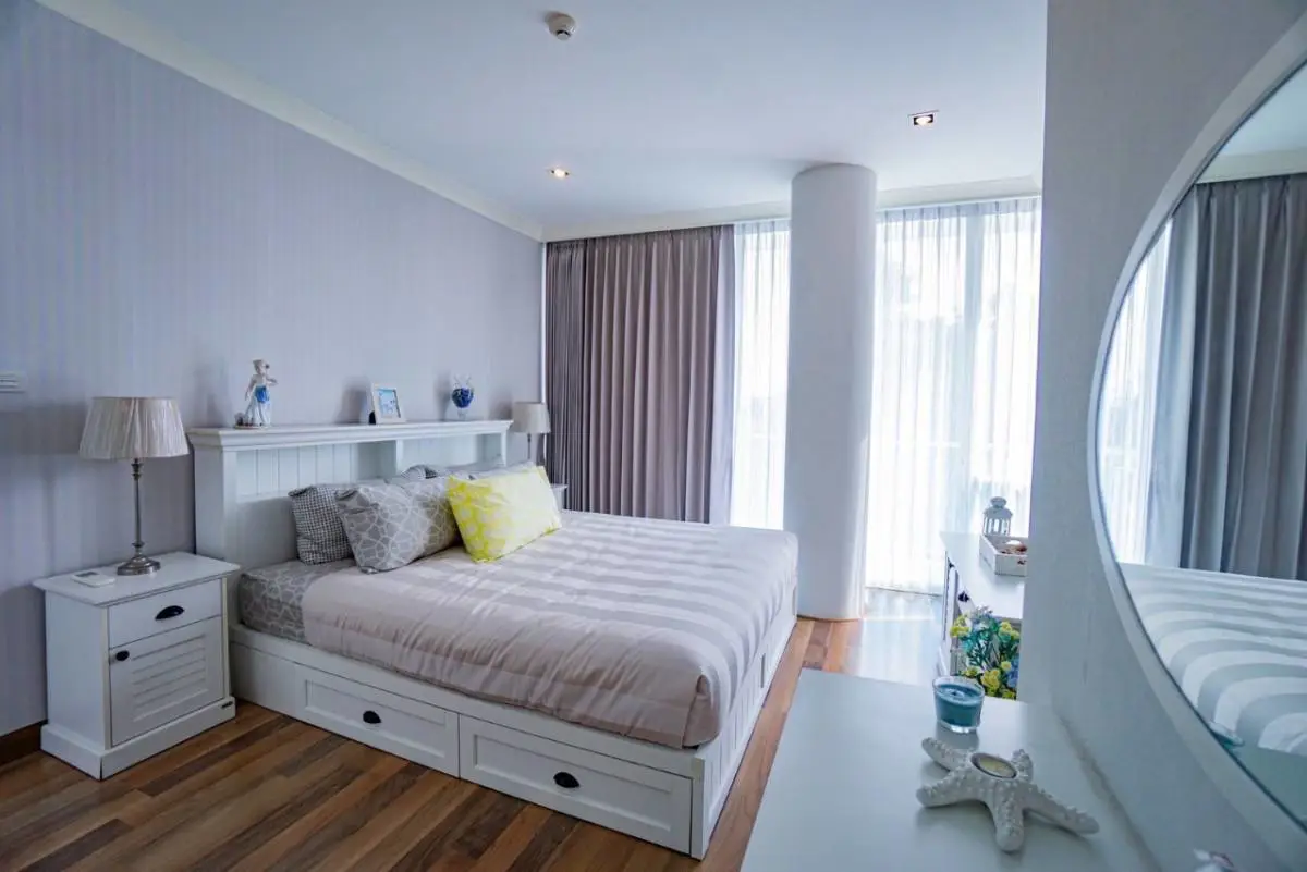 Escape from everyday life in this exquisite vacation condo in picturesque Hua Hin. This unique accommodation offers stunning sea views and is just steps away from the beach. The modern and stylish decor combines comfort and elegance, making you feel right at home immediately.
