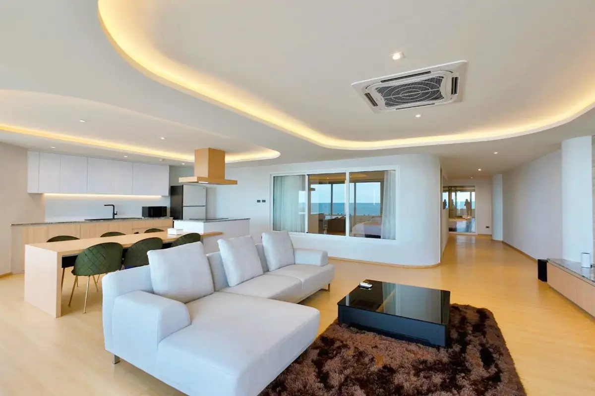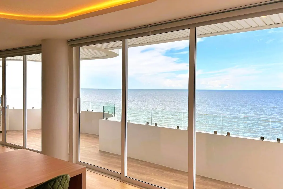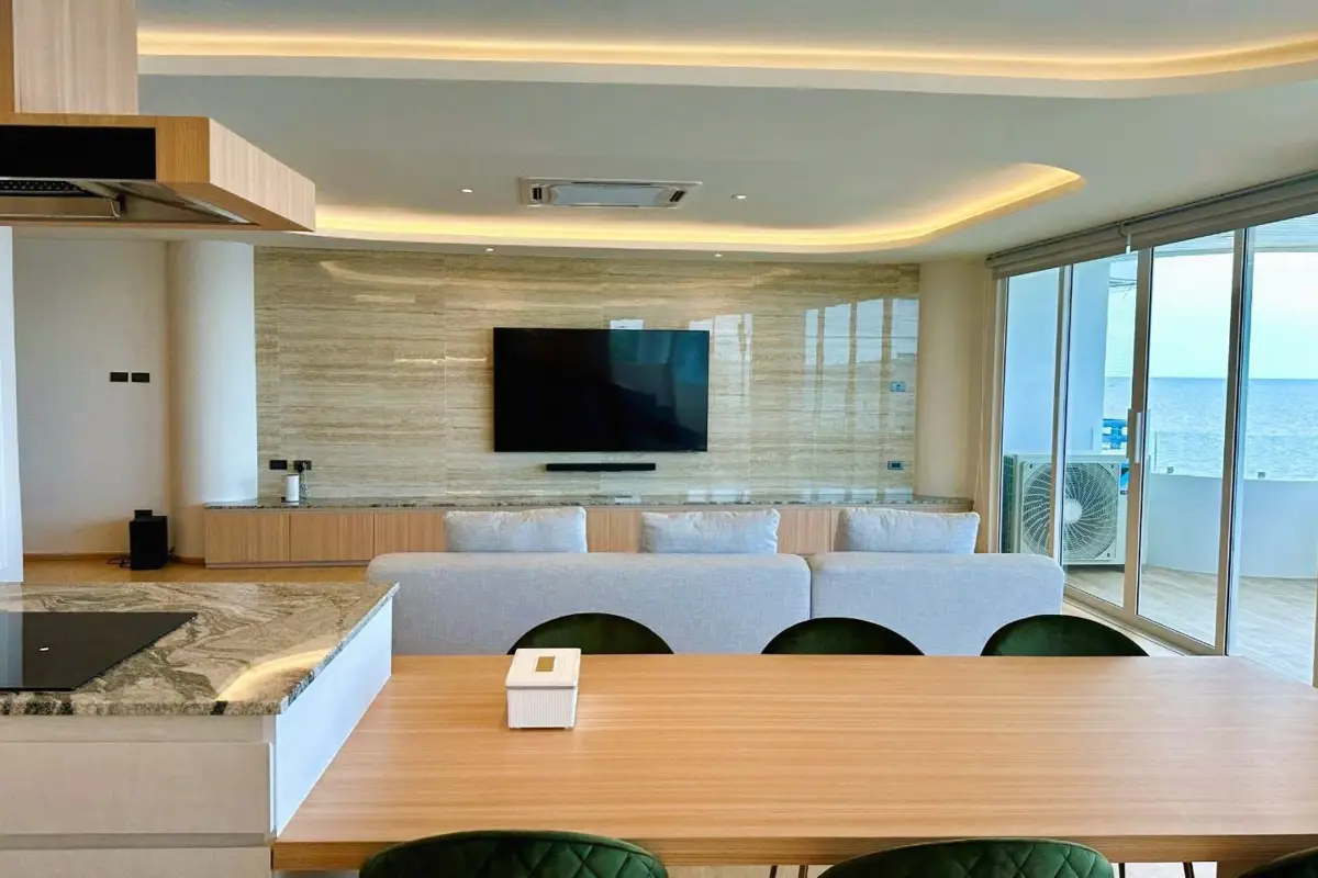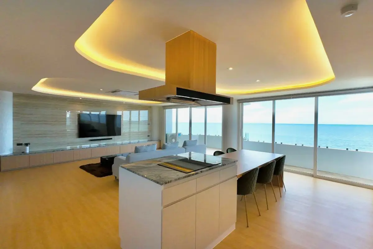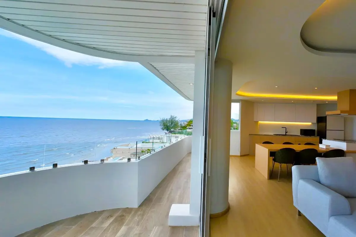 Completely Redesigned Beachfront Condo with Panoramic Sea Views. Experience luxury living at its finest in this stunning Sea View Beachfront Condo located in the heart of Cha-Am. This beautiful condo offers breathtaking ocean views and direct access to a pristine beach, providing the perfect getaway and long-term residence.
