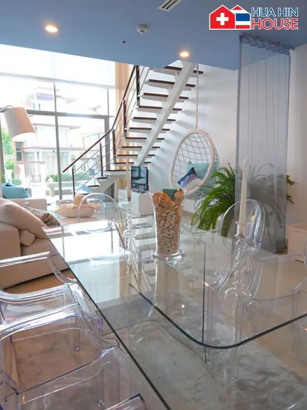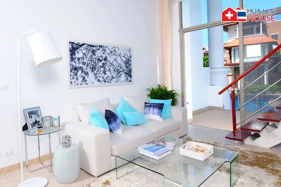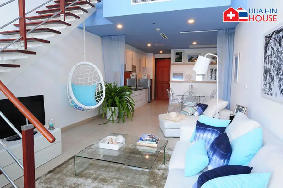 This 14-story beachfront condominium offers an exclusive living experience with only 99 units, ensuring privacy and tranquility. The featured unit is a 1st-floor duplex spanning 86.43 sqm with direct pool access, making it perfect for those who seek modern comfort with resort-style amenities. Priced at 5.28 million THB, this condo stands out with its loft-style design, spacious balconies, and a homely ambiance. Located in the heart of Cha-am, it’s a great blend of beachside serenity and contemporary living. Ideal for those who value both style and convenience, the property is equipped with all the essentials for a relaxed lifestyle.