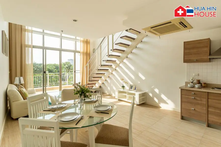 This 18-story beachfront condominium, with only 94 units, offers an exclusive and private living experience. The available unit is a 14th-floor duplex, featuring a spacious 72.62 sqm layout with stunning sea views. Priced at 3.9 million THB, this condo is perfect for those seeking a tranquil and luxurious beachside lifestyle. The midrise building's design includes a single-loaded corridor, ensuring all units face the sea, and a dedicated parking structure for added convenience.