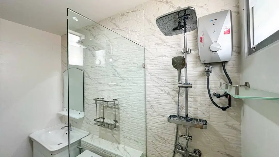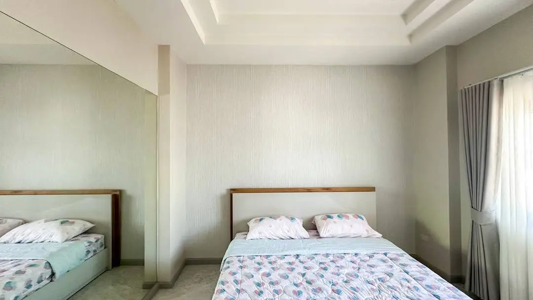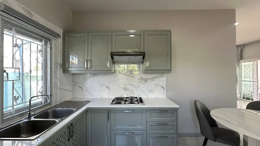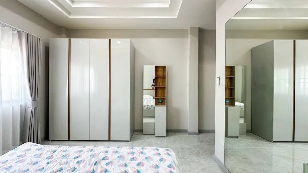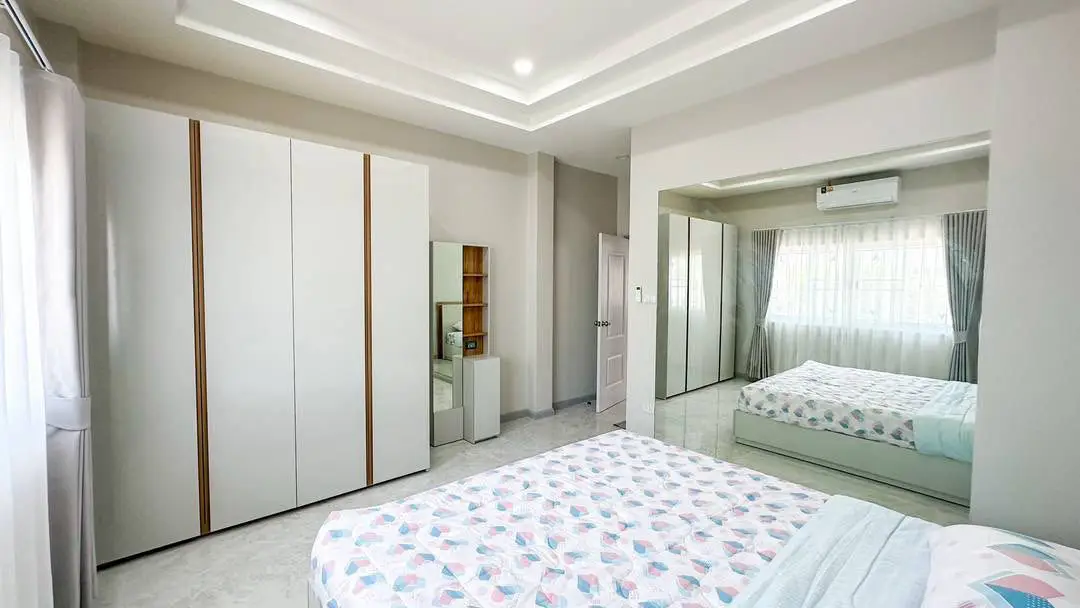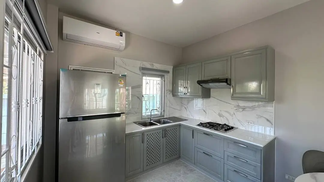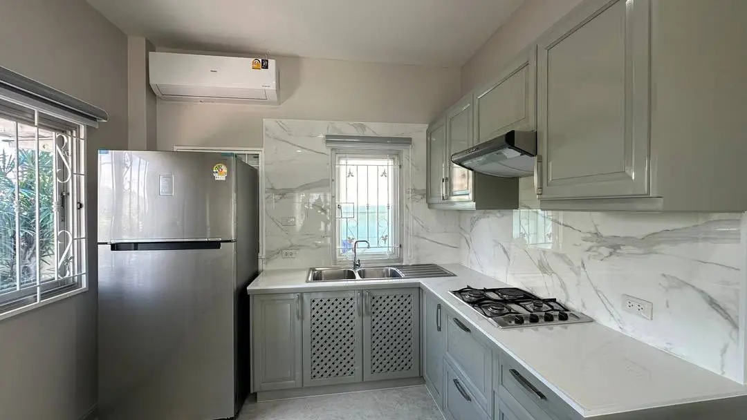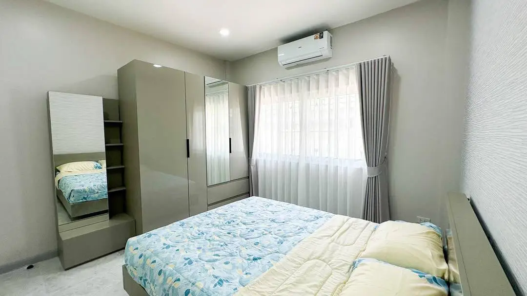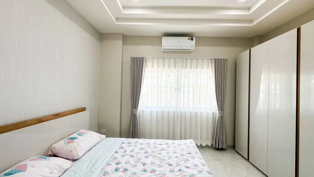 Fully furnished with good quality furniture, air conditioners in every room, TV, refrigerator, washing machine, remote control door
