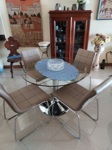 The built-in furniture of the kitchen and the bedroom are of course part of the flat.