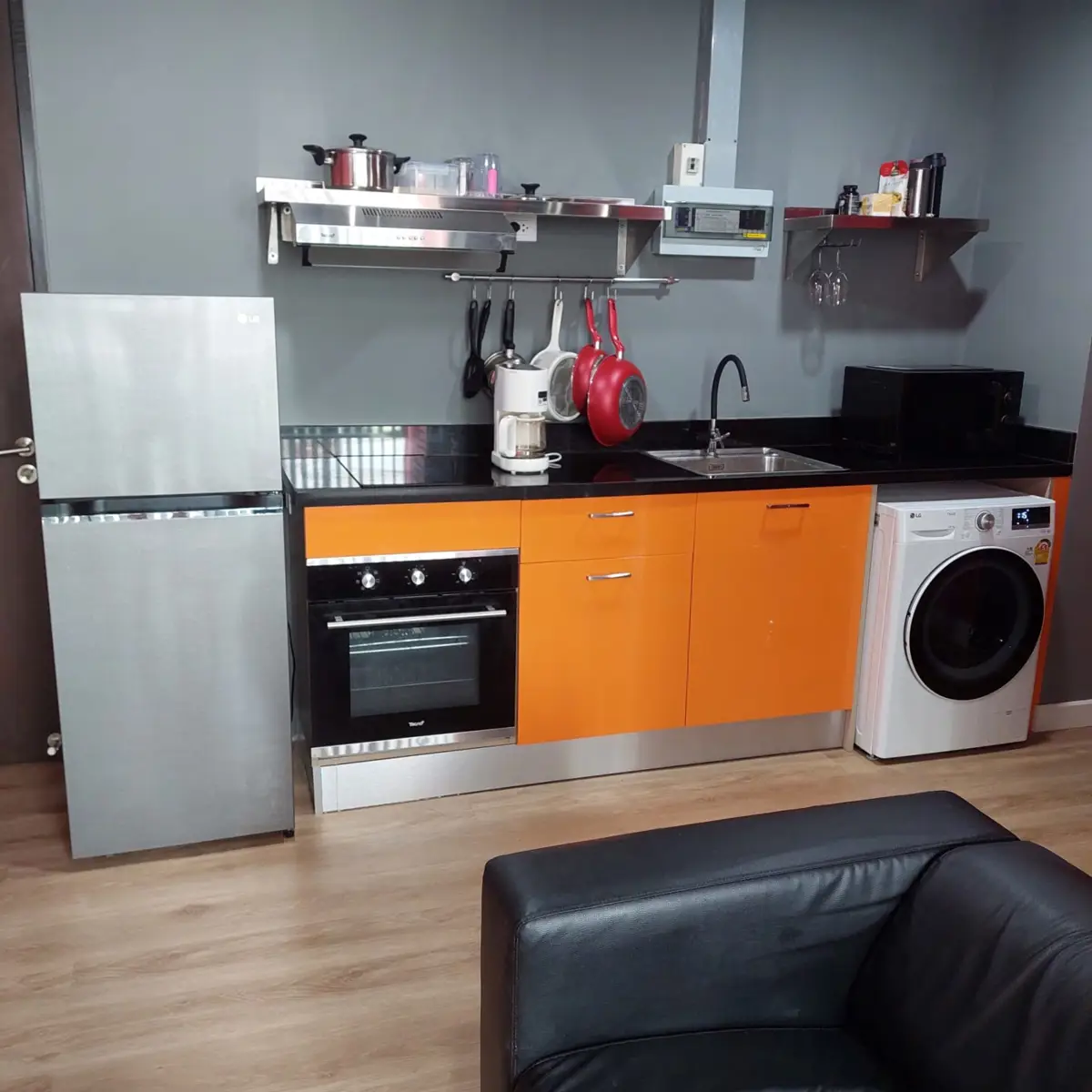 Click Condo Sukhumvit 65 now has this 1+1 bedroom condo on the market for sale with a tenant. The property measures 54 sqm., is furnished and is located on the 3rd floor of this popular pet friendly low-rise condominium in Ekkamai. The condo has been renovated into a 'loft style' residence and has an office, en-suite bedroom, living area, kitchen and dining area and a toilet. There are new air-conditioning units and a good sized balcony. The condo has an all new kitchen, including Techno oven, induction cooktop and range hood, Electrolux microwave, plus a new LG washer/dryer, three new LG air conditioning units, flooring and lighting, which were installed in December 2023 and are energy efficient.