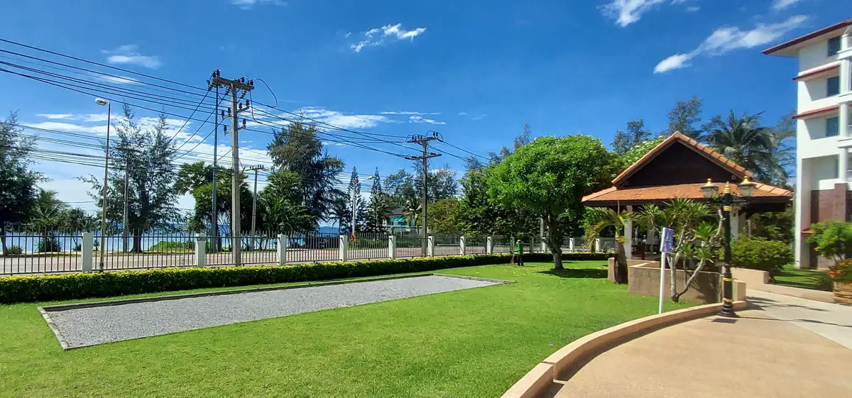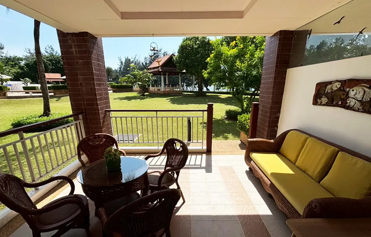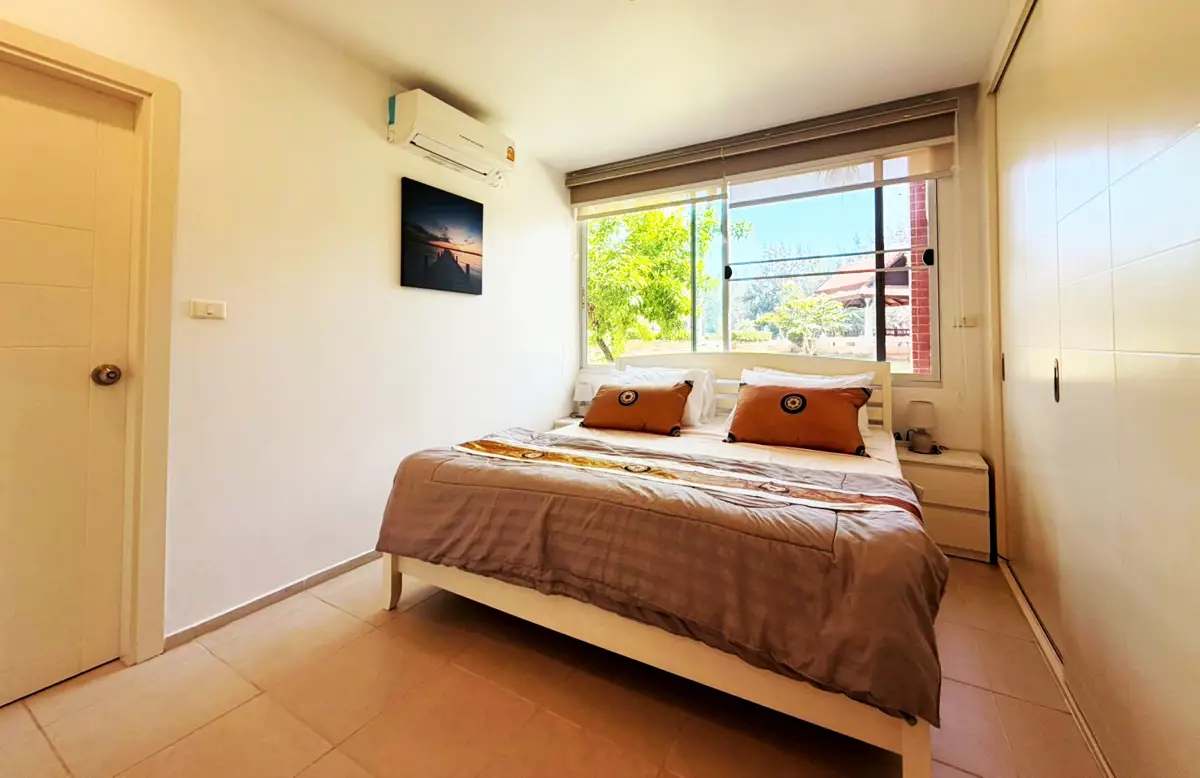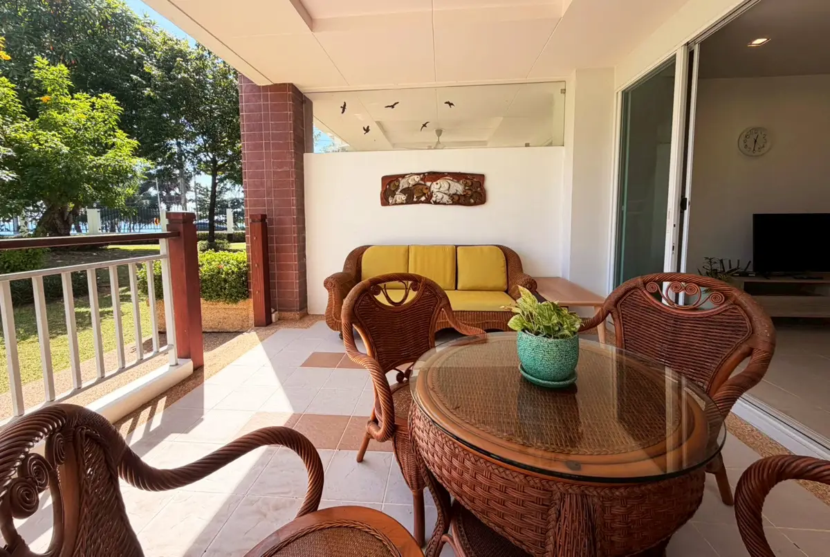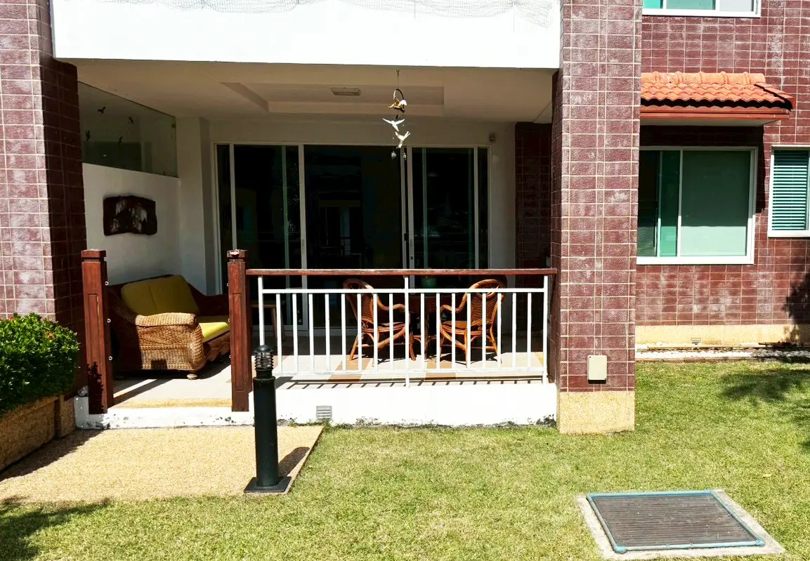 A nice condo in Seaview Condominium with sea views despite being on the ground floor. It is located very close to the 3 km long beach in Laem Mae Phim.