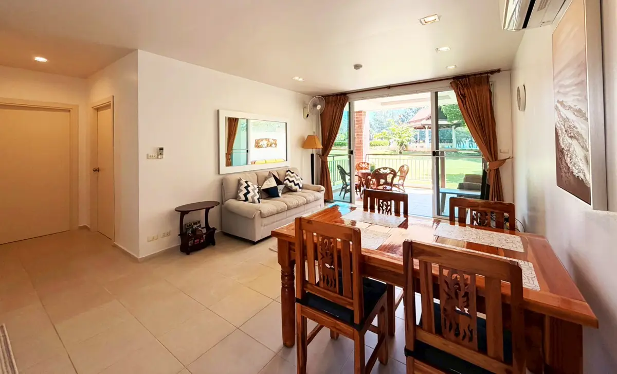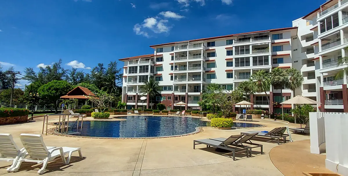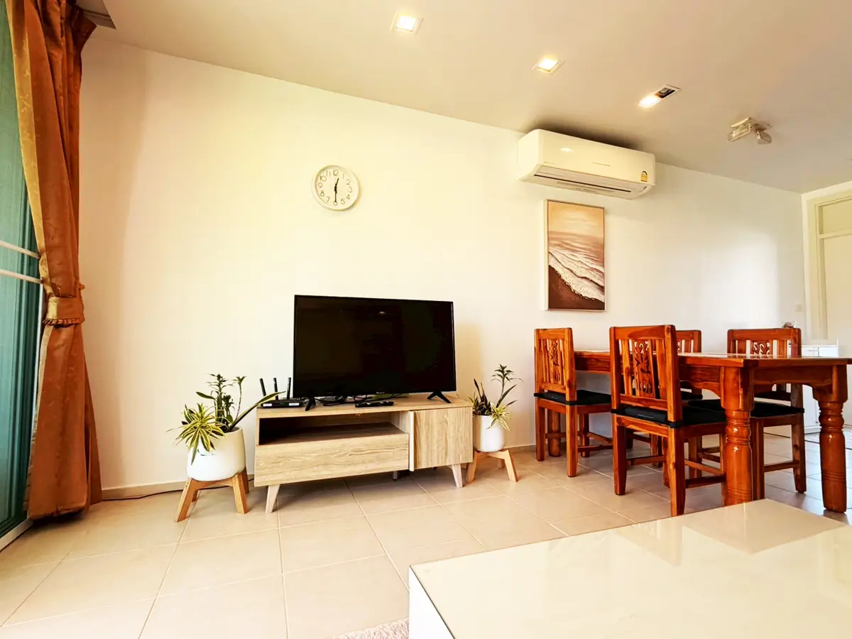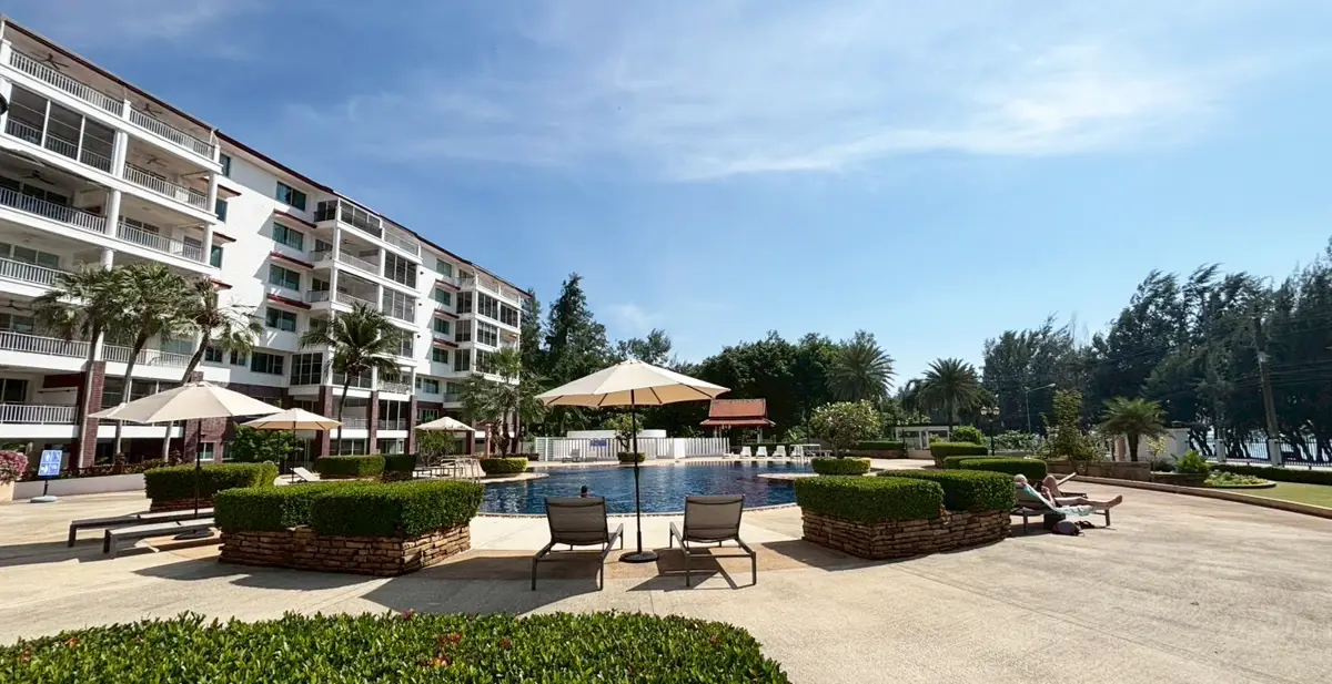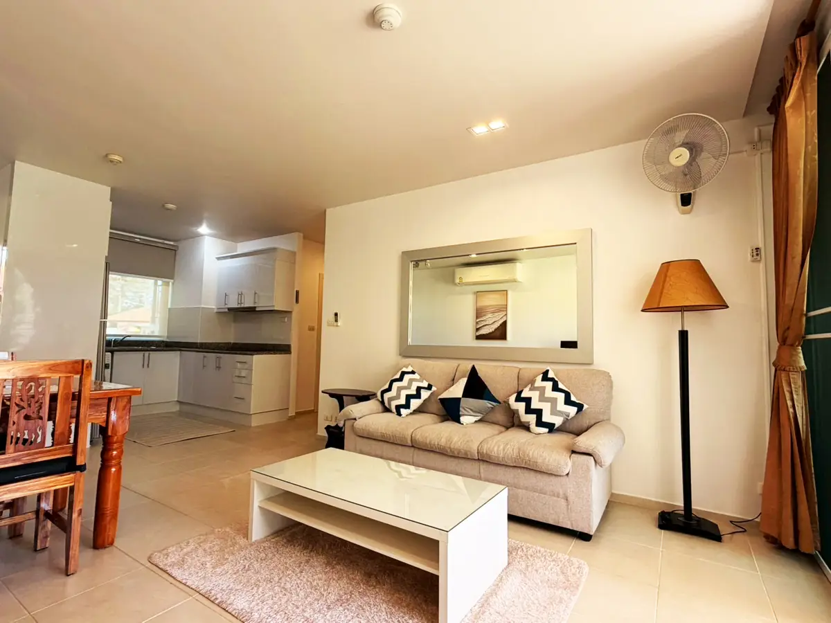 A nice condo in Seaview Condominium with sea views despite being on the ground floor. It is located very close to the 3 km long beach in Laem Mae Phim.