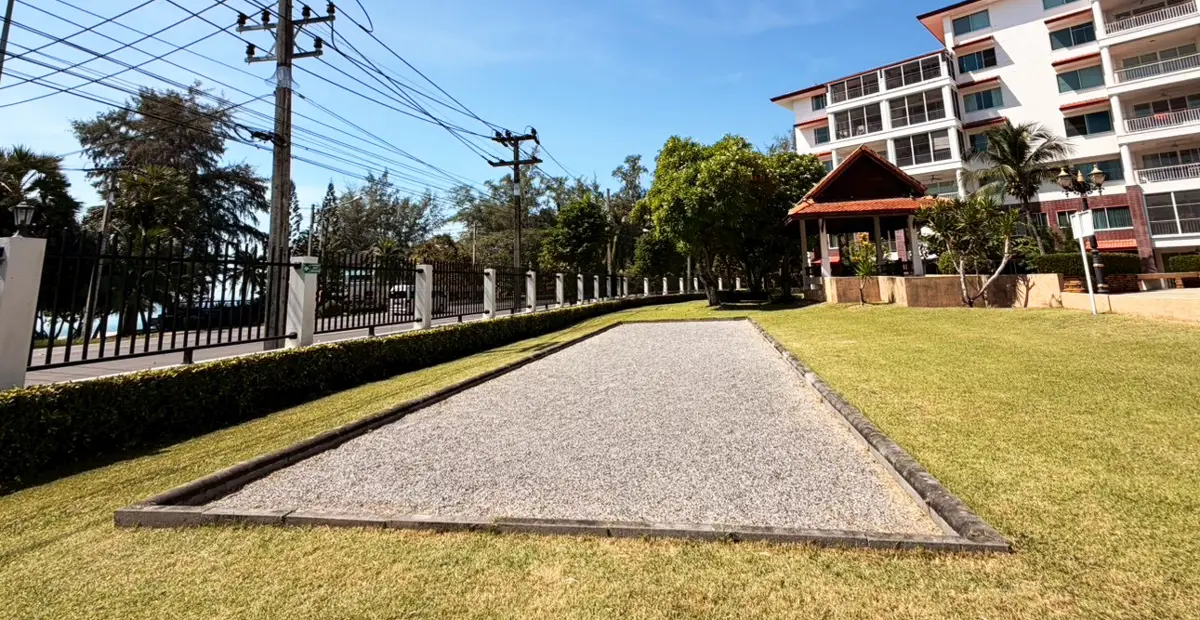 In the area there is access to a gym, massage, a boules court, and a barbecue area. The area is guarded around the clock.