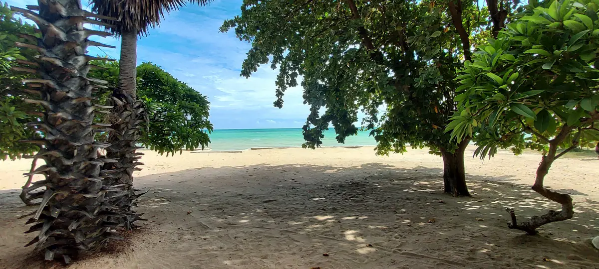 Between this condominium and the private beach there is a large lovely swimming-pool facility with a garden.