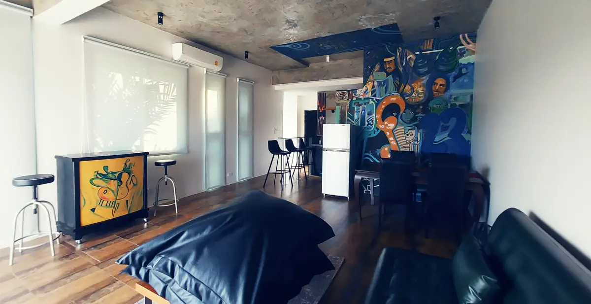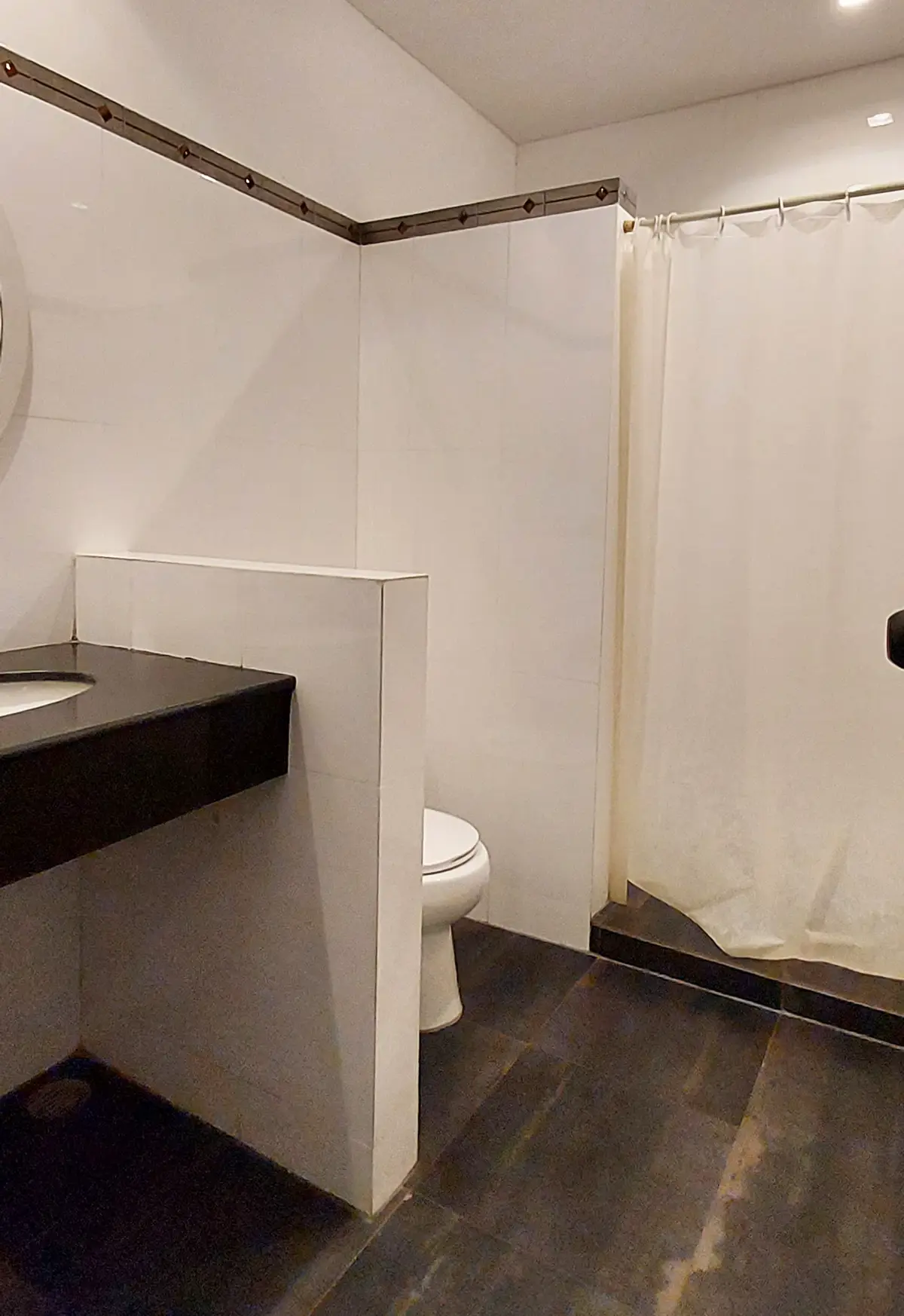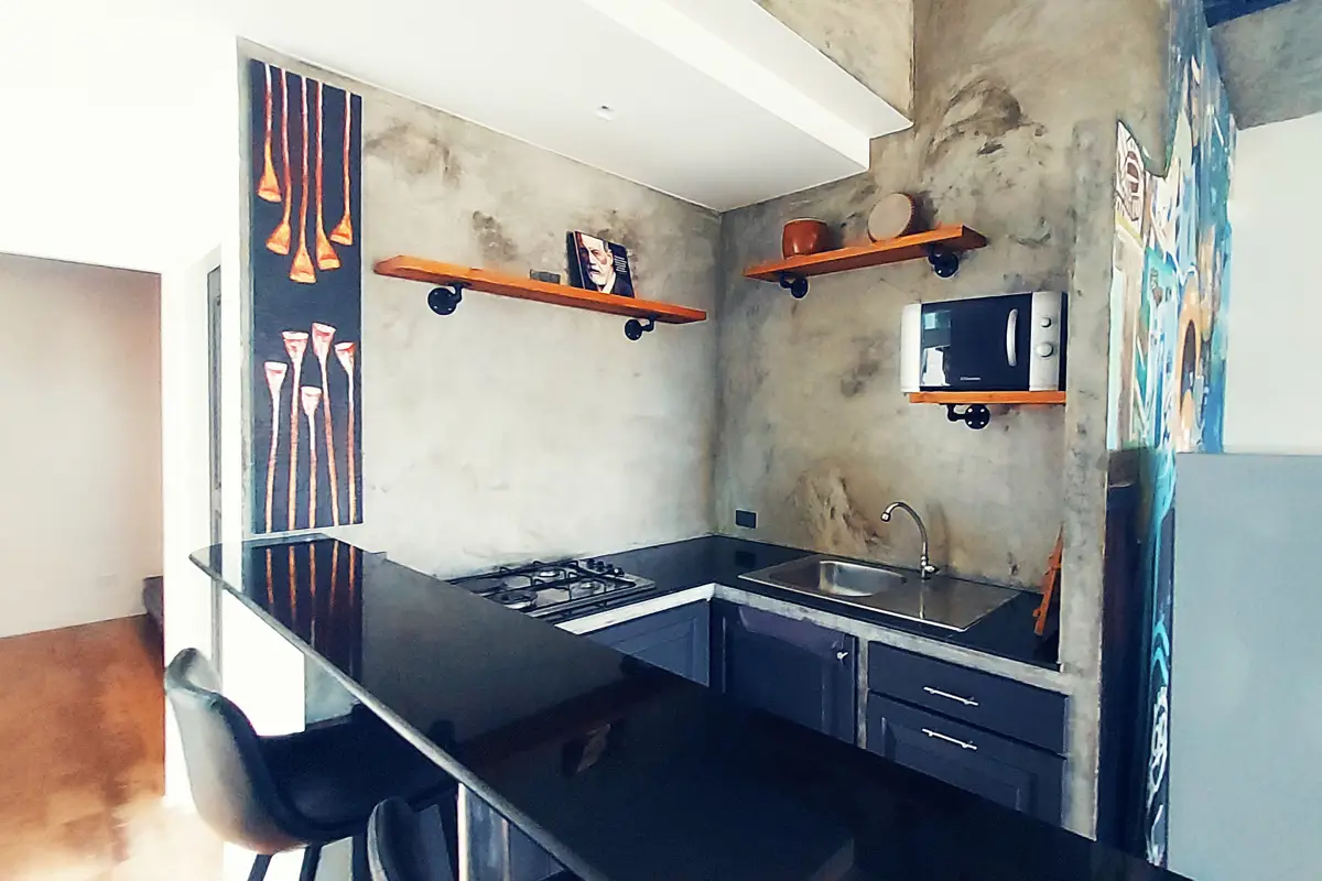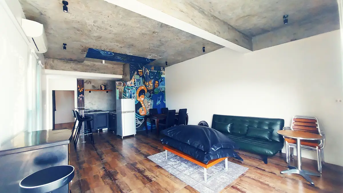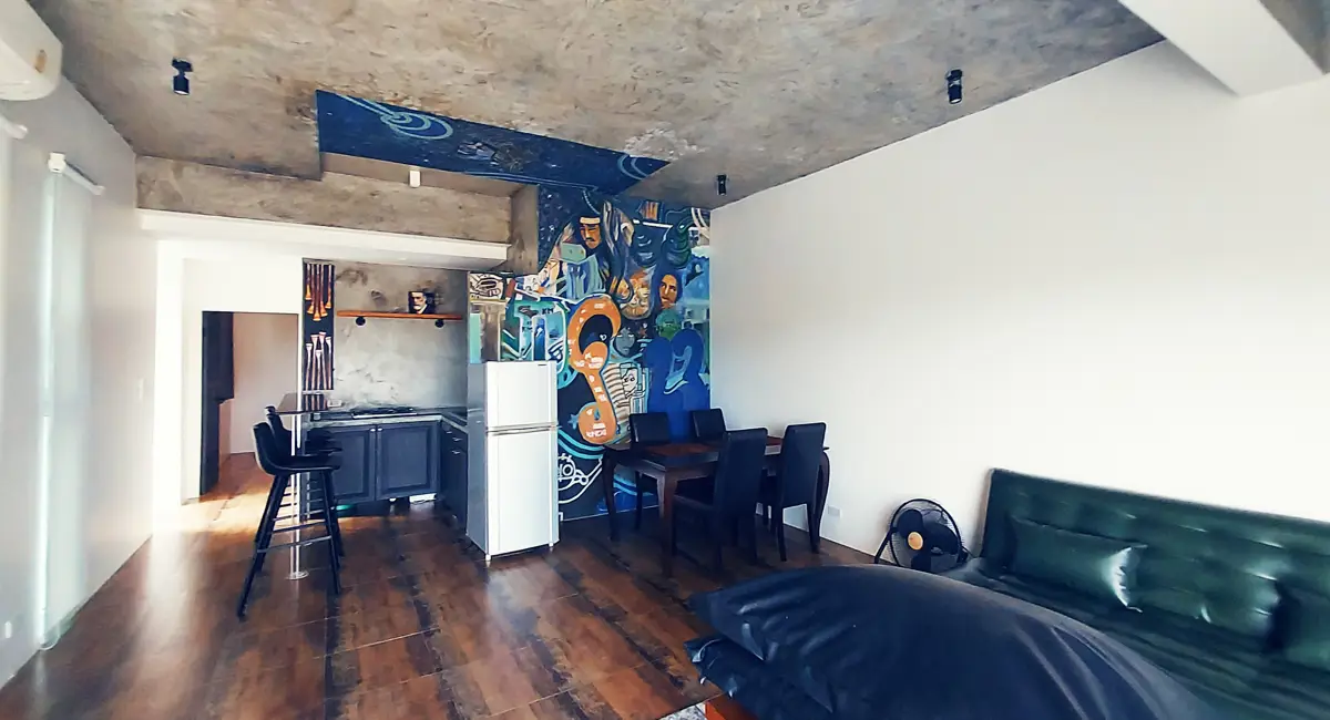 The residential property has a living area of 85,75 square meters and has 1 bedroom, 1 bathroom, 1 toilet, a living room, a bar-kitchen and a large balcony facing south. The residence is fully furnished and beautifully decorated. The bathroom is fully tiled.