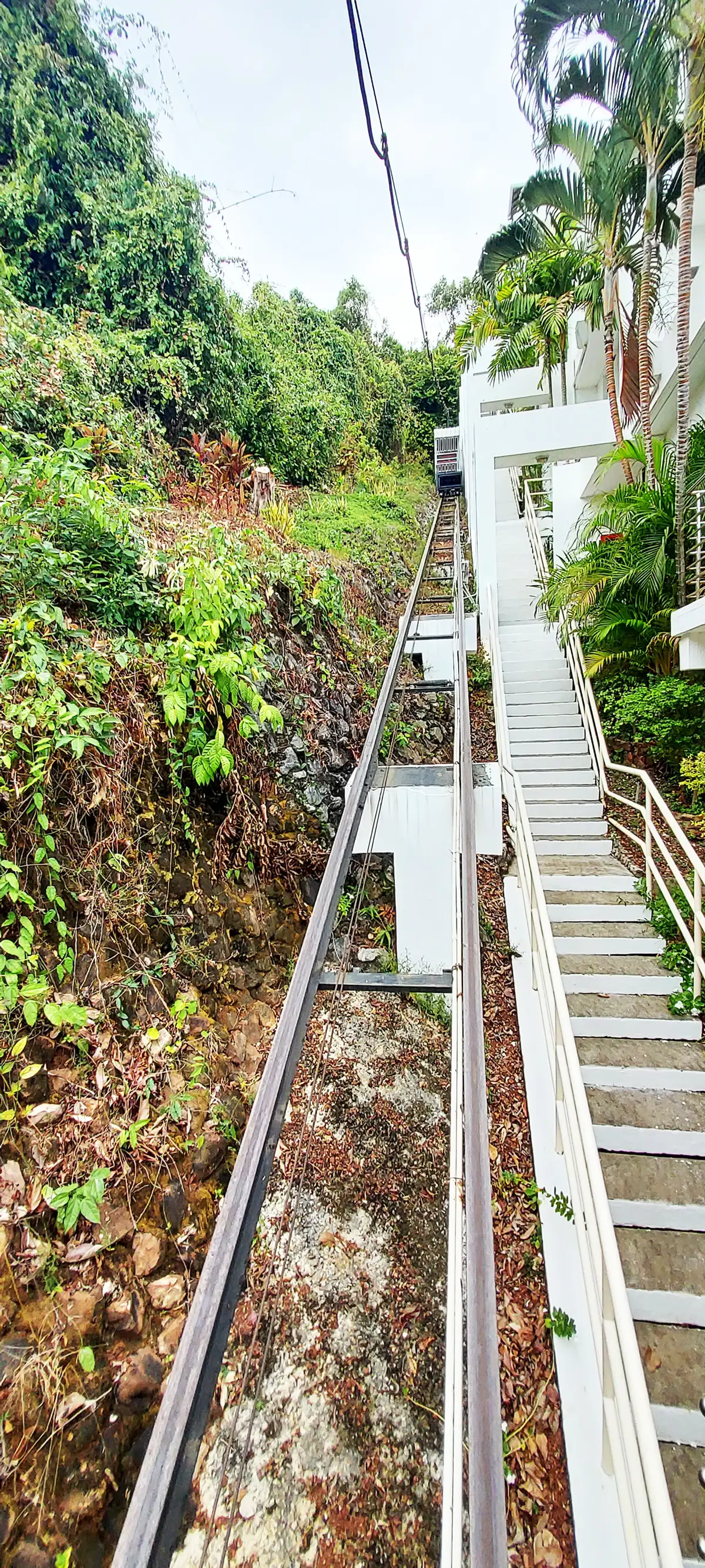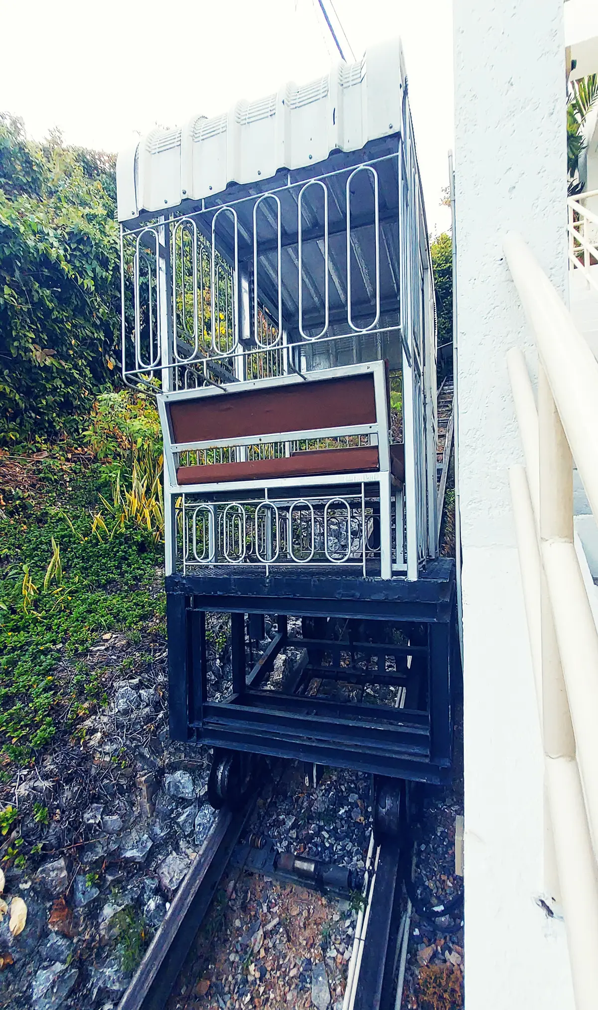 The condominium located on a hillside has a total of 7 floors with a total of 22 condos. The elevator, which resembles a cable car with the basket on rails, can be reached on all levels.