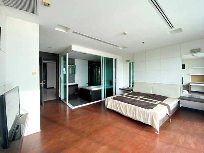 Master bedroom suite with bedroom furniture, media cabinet and flat screen TV