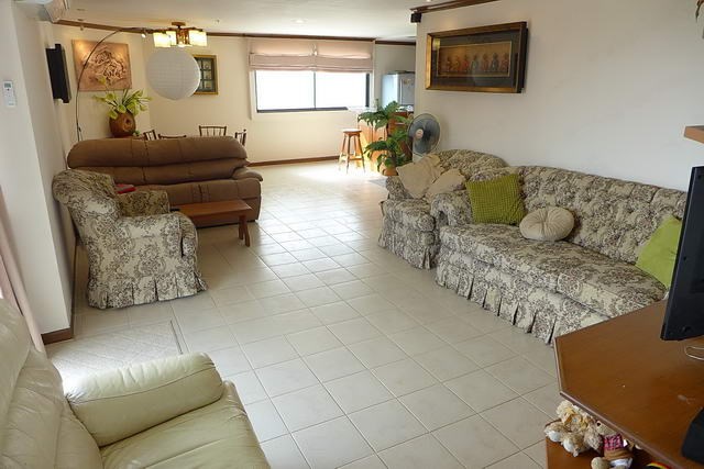 PATTAYA REAL ESTATE: Jomtien Beach Paradise Condo for Rent, end corner unit, 96 sqm, 1 bedroom, 1 bathroom, European-style kitchen, fully furnished, 2 Balconies, partial Sea and City views