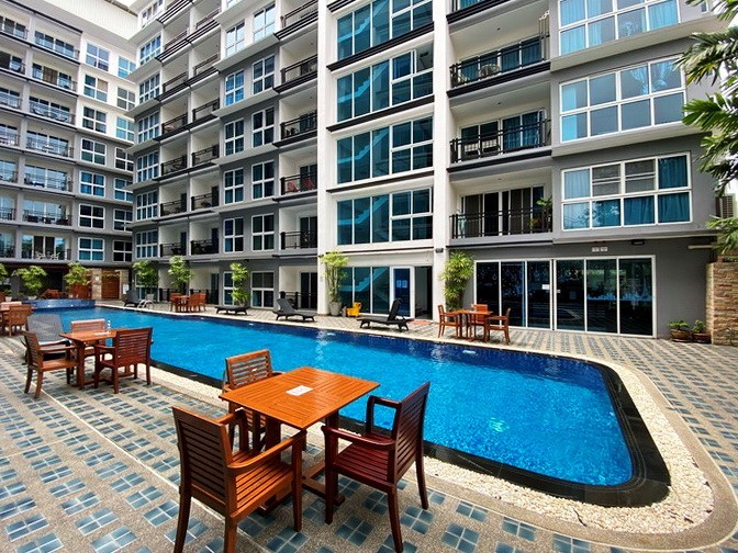 PATTAYA REAL ESTATE: The Avenue Residence condominium for rent, 45 sqm, 1-bedroom suite, European-style kitchen, fully furnished, balcony, communal swimming pool, Central South location, fitness centre, 24-7 Security