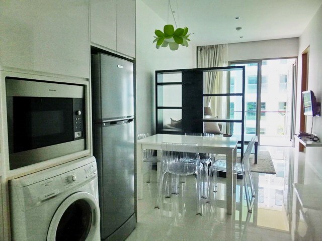 PATTAYA REAL ESTATE: The Sanctuary Condominium for rent Wong Amat Pattaya, Absolute Beachfront condo for rent, Luxury Condo for rent, 64 sqm, 2 bedrooms, 2 bathrooms, living room, European-style kitchen, fully furnished, balcony, 24-7 Security