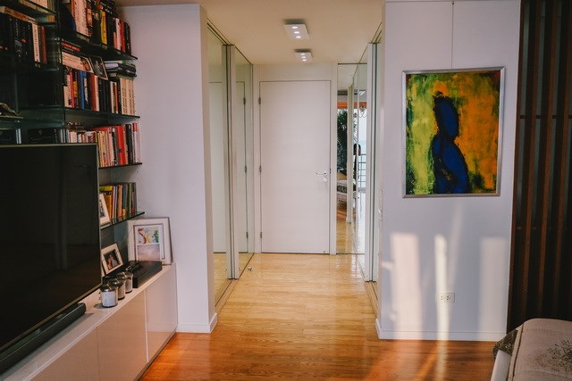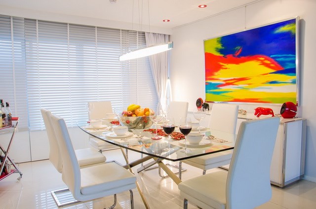 You enter the condominium into the entrance hallway that then leads to the open plan living and dining area with guest bathroom.