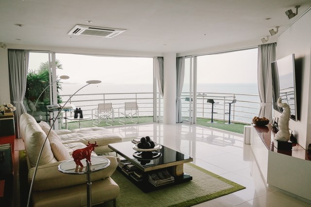 PATTAYA REAL ESTATE: Ocean-front condominium for sale, 238 sqm, penthouse, 3 bedrooms all en-suite, guest bathroom, maid room with bathroom, great use of balcony space, amazing sea views, luxury property, Foreign Ownership