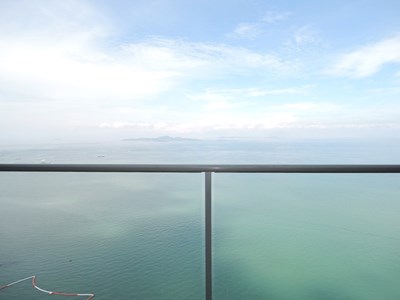 Sliding doors open from the living area to the ocean-facing balcony with views of Koh Larn, Wong Amat beach and Pattaya Bay all the way to Bali Hai.