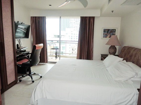 This 112 sqm apartment offers great views of north Pattaya Bay from the 2 balconies and is in a most convenient position for restaurants, nightlife etc. as well as being suitable for travelling to the industrial zones