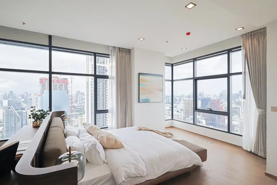 Junior penthouse on the market for sale at Conner Ratchathewi. This luxury property has 3 bedrooms and 3 bathrooms, measures 173 sqm. and is situated on the 37th floor. The condo has fantastic views of the surrounding area, comes fully furnished and comes with 4 car parking spaces. Conner Ratchathewi has a swimming pool, gym, lounge, parking and security service and the BTS is within easy reach. For mroe details and to arrange a viewing of this condo for sale in Bangkok contact us at BKKCondos.
