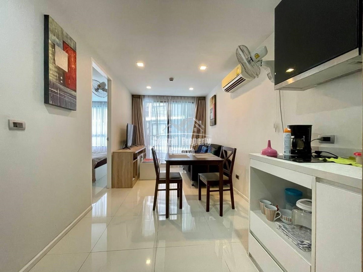 Contemporary, 1 bed, 1 bath condo in Urban Attitude, central Pattaya for sale in Foreign name. This unit is fully furnished with built-in wardrobes and a high spec European kitchenette including branded appliances. The bathroom is spacious and contemporary, and the living area is generous with a dedicated dining area and a superb balcony boasting pool views.