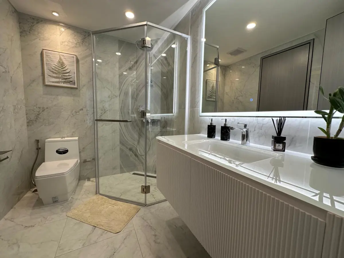 - 77.8 sqm: This is a very spacious one-bedroom unit, even larger than the City Garden Tower unit. This generous size likely allows for a comfortable living area, a well-proportioned bedroom, and possibly a larger balcony.