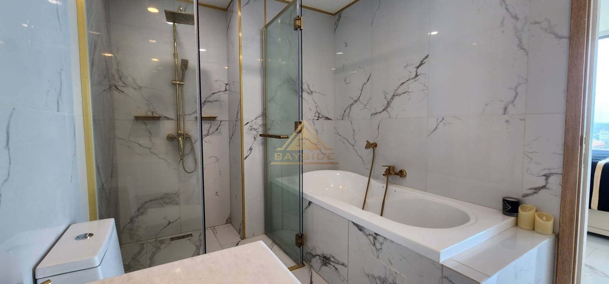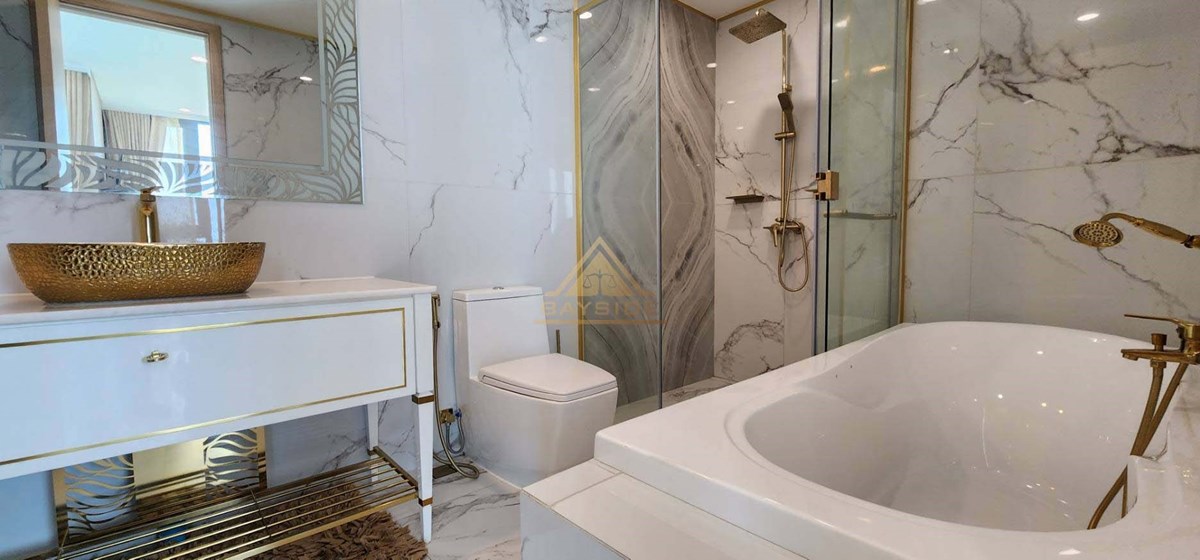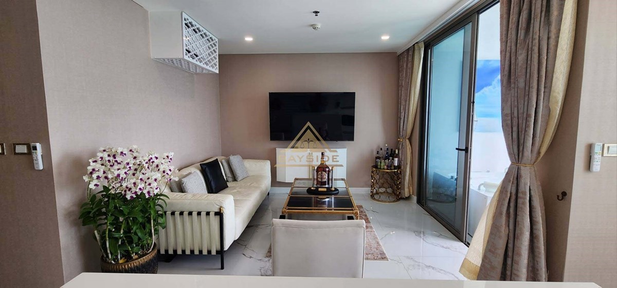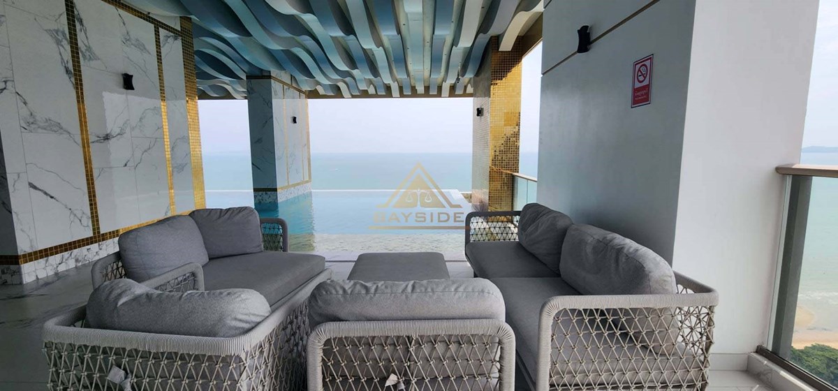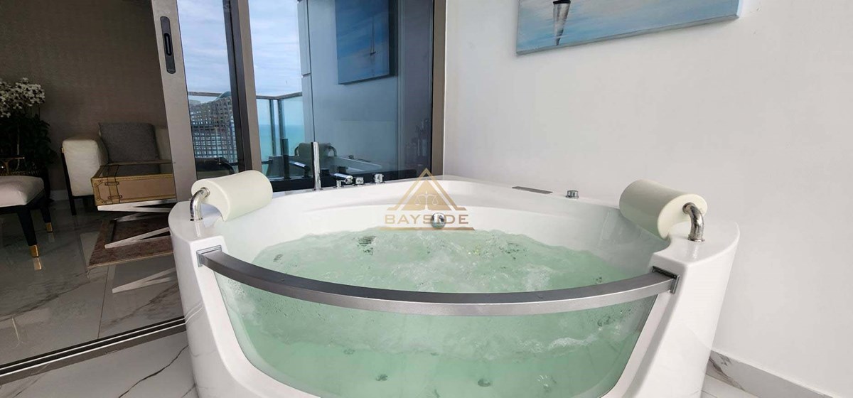 Beachfront Condo in Jomtien and Luxury style, fitted furniture, washing machine, Air conditions, Flat Screen TV, Dining table, Fully Kitchen ( Electric Hob,Refrigerator/Freezer, Microwave,Complete Kitchen Tool Set, etc.), Living room with couch!! and Balcony (Beach View) and Jacuzzi x2, Usable area 111 Sqm. !!