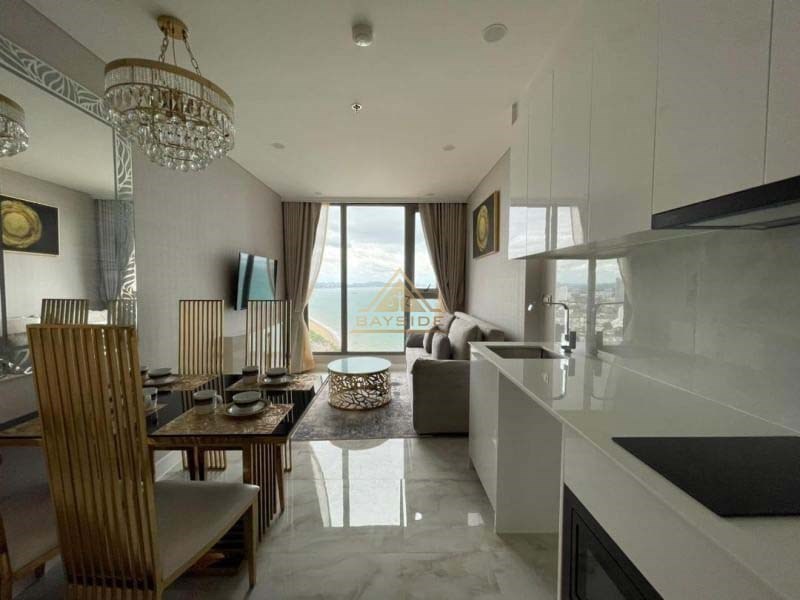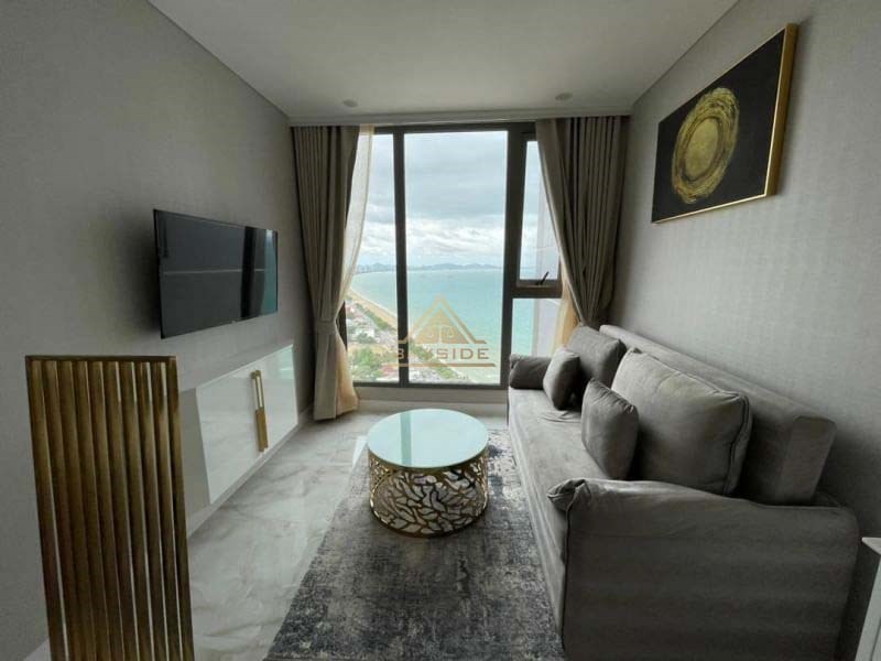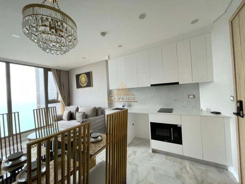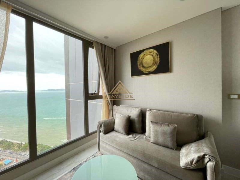Beachfront Condo in Jomtien and Luxury style, fitted furniture, Air conditions, Flat Screen TV, Dining table, Fully Kitchen ( Electric Hob,Refrigerator/Freezer, Microwave,Complete Kitchen Tool Set, etc.), Living room with couch!! and Balcony (Beach View)