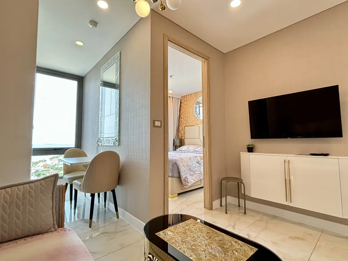 - A 2,000 sqm beach club with a sand-bottom pool and sunken bar.