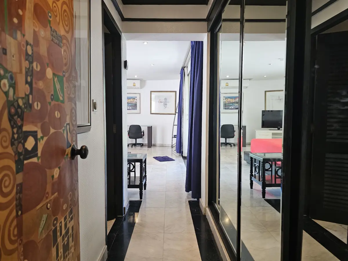 But in addition to that you have 3 terraces with the one on the lower floor giving you direct access to a private garden and from there you get onto the beach through a gate. You never get the impression that you are in the middle of the clamorous Pattaya although you are only
