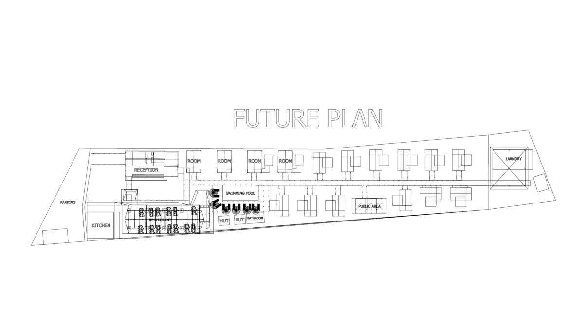 The future plans that the current owners have not had time to realize include a swimming pool and a meeting room.