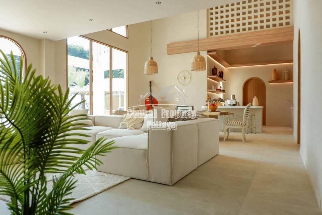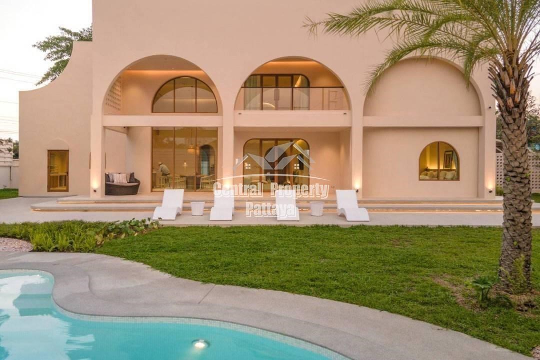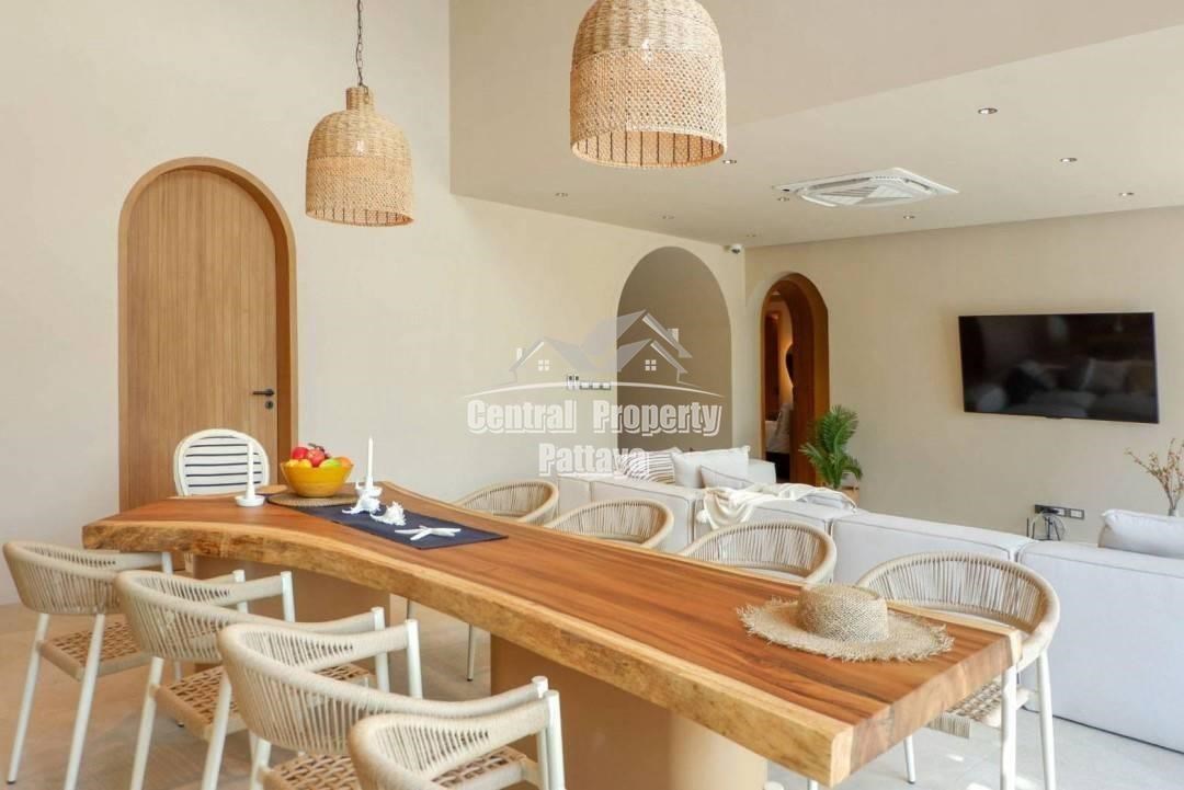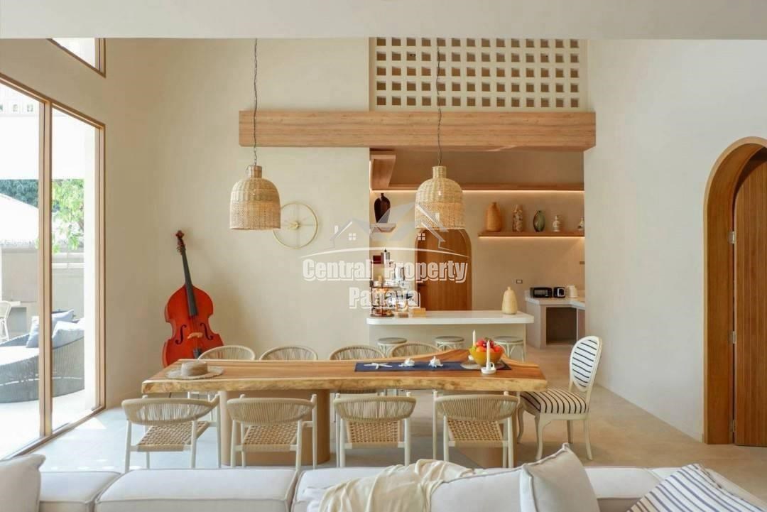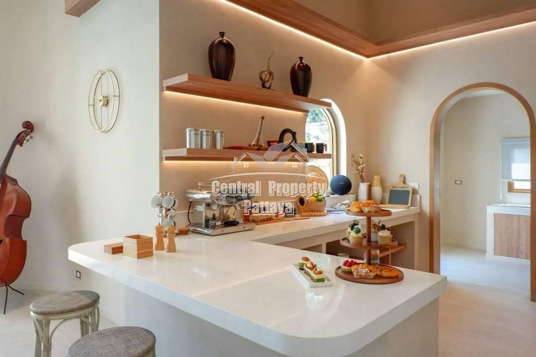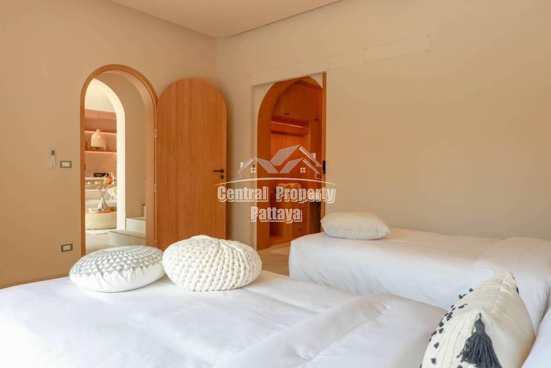 Retreat to the serene bedrooms, featuring soft, earthy tones, built-in closets, and luxurious en-suite bathrooms. Located in a peaceful setting yet close to the best of Pattaya, this villa is a true oasis of Mediterranean elegance.