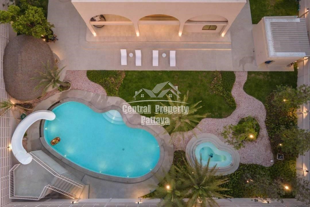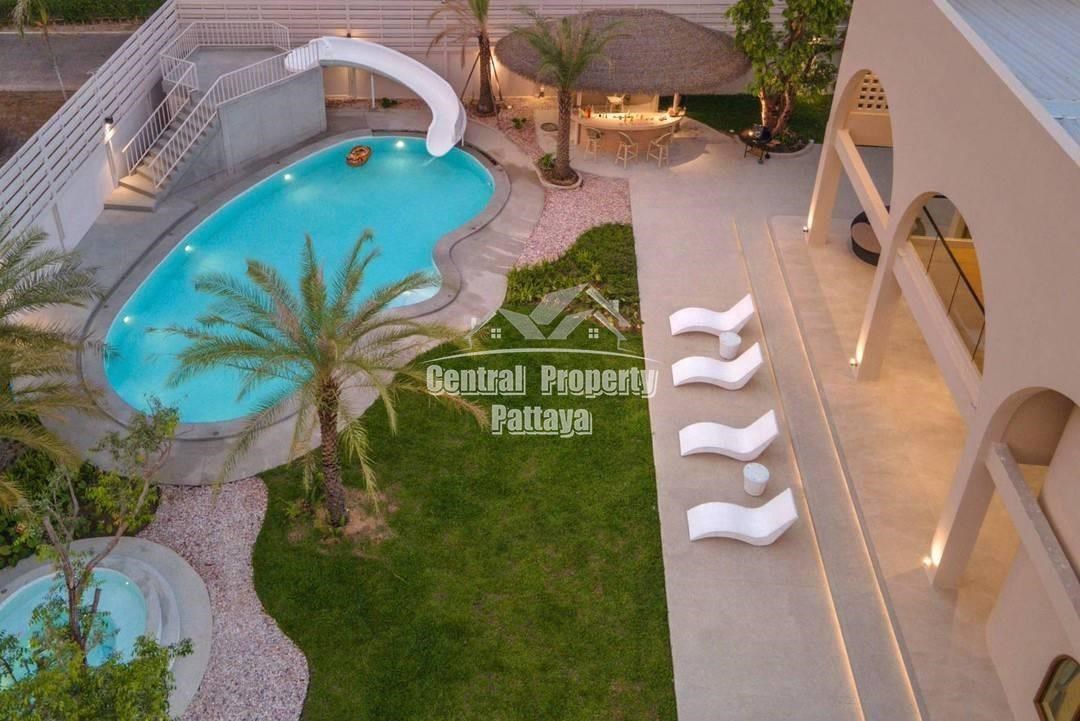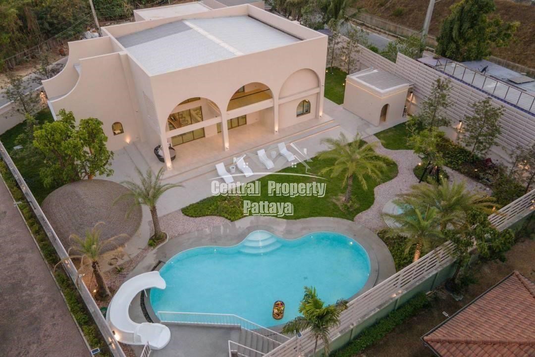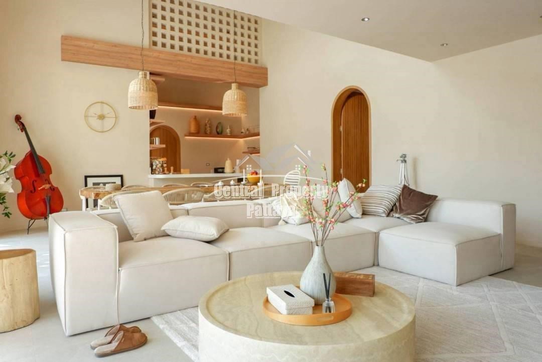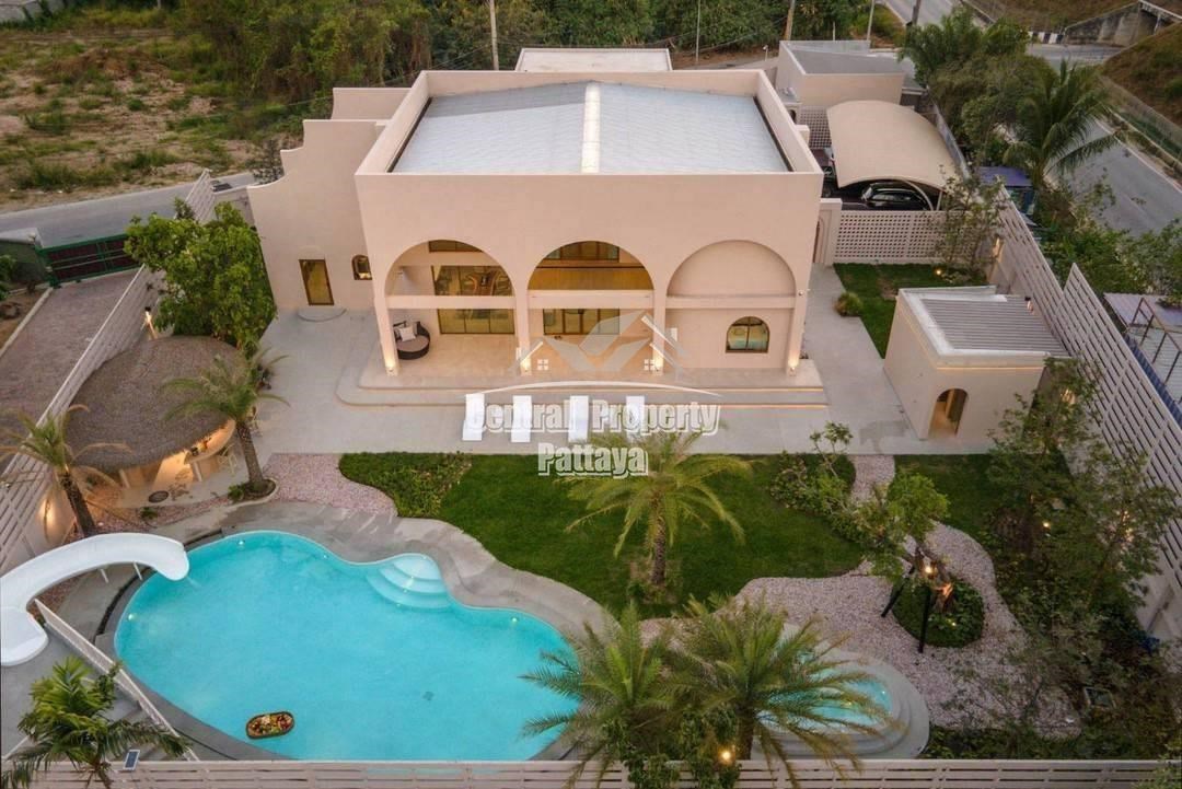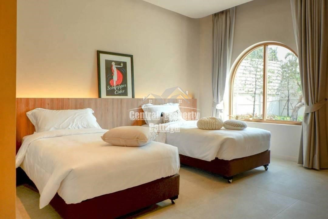 Retreat to the serene bedrooms, featuring soft, earthy tones, built-in closets, and luxurious en-suite bathrooms. Located in a peaceful setting yet close to the best of Pattaya, this villa is a true oasis of Mediterranean elegance.
