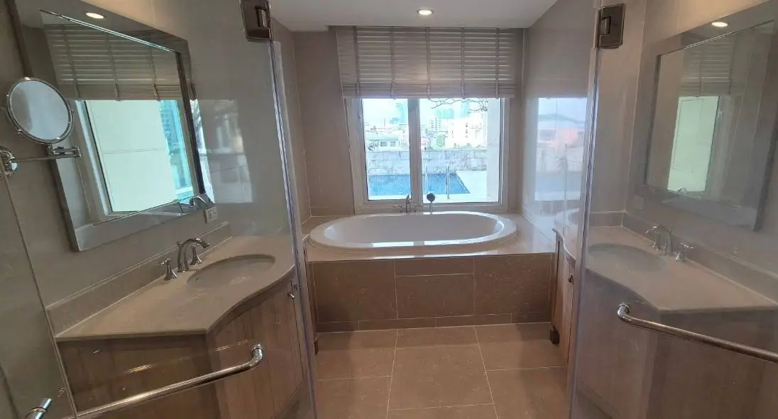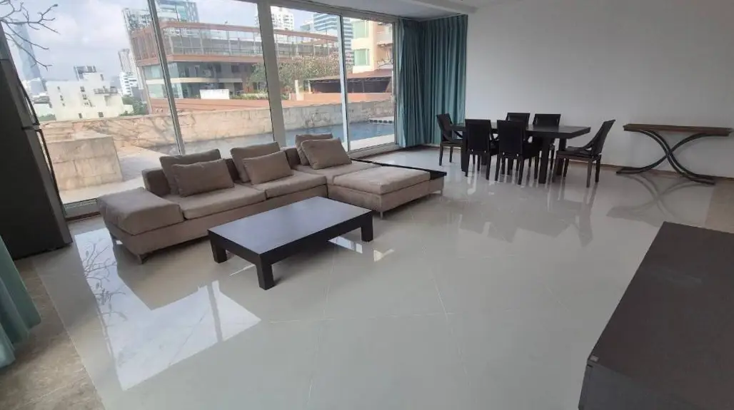The Empire Place is a luxury condominium in Bangkok’s Sathorn district, designed for those who want style, comfort, and convenience in the heart of the city. This elegant high-rise offers spacious residences with modern layouts, quality finishes, and large windows that bring in natural light while showcasing impressive skyline views. Perfect for both families and professionals, The Empire Place is one of the most sought-after addresses in Sathorn. Available to rent is this 3 bedroom, 4 bathroom property with its own private swimming pool on the terrace. The condo measures 370 sqm, comes fully furnished and is on the 6th floor.