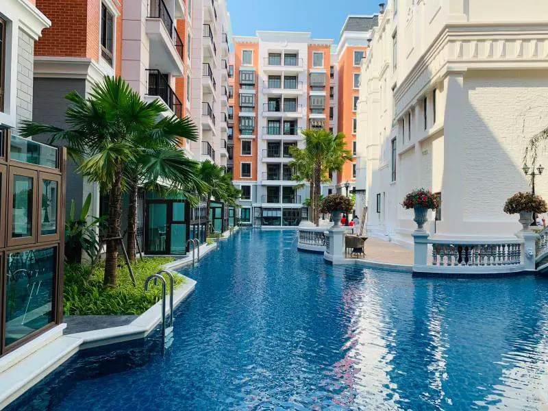 - Facilities: Water park, sauna, steam, jacuzzi, gym, library, snooker, conference room, playground, restaurants, parking, 24-hour security