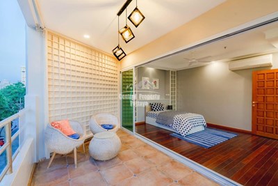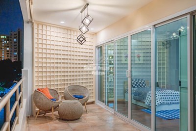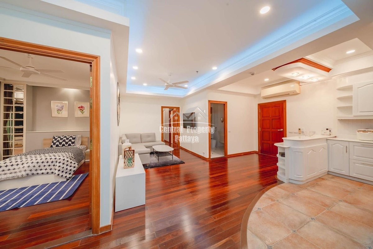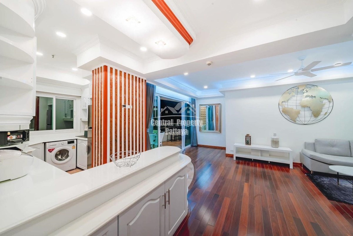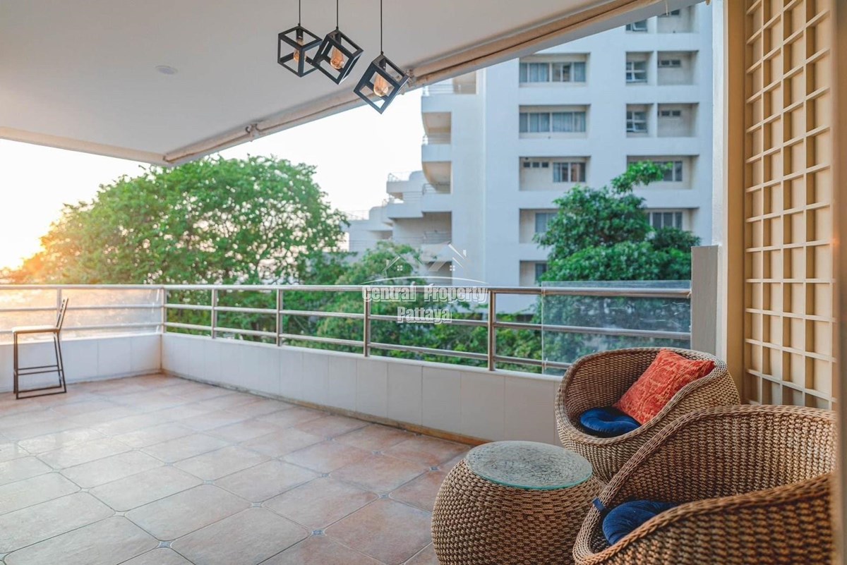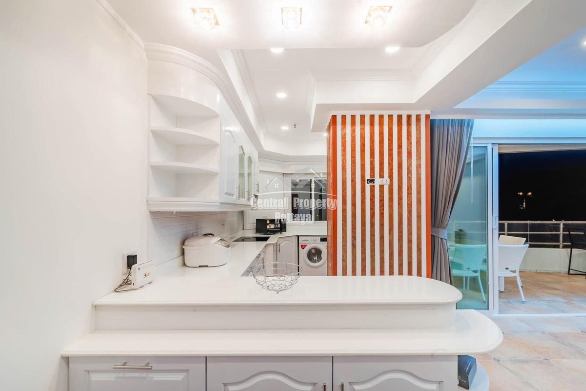 It comes fully furnished with a modern, European kitchen, dining area, and an exceptionally large, wraparound balcony with stunning sea views of Koh Larn as well as HBO cable TV.