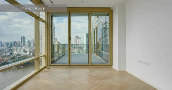 Four Seasons Private Residences is a modern 73 storey high-rise that sits on the bank of the Chao Phraya River. The building has 2 swimming pools, fully equipped gym, sauna, lounge, business center, sky lounge, wine room, cigar lounge, parking and security service, as well as residents having easy access to the restaurants and cafes of the two neighboring Five Star Hotels.