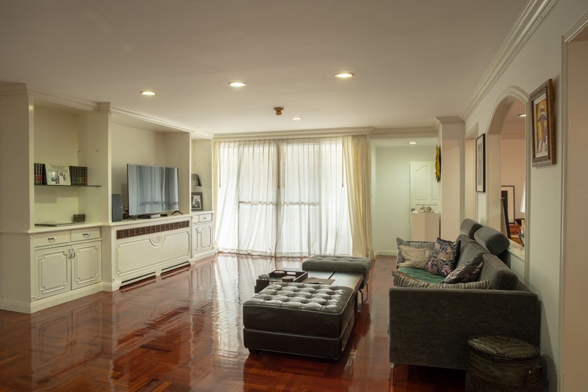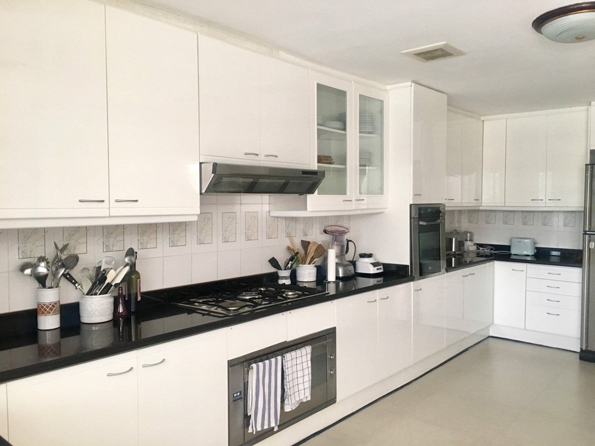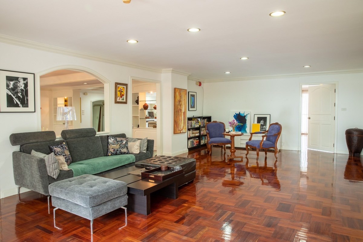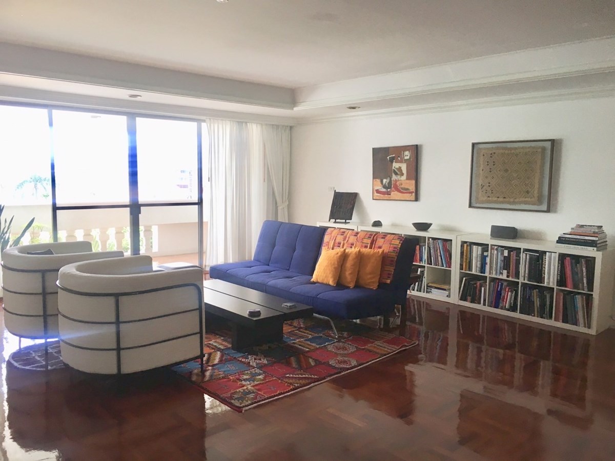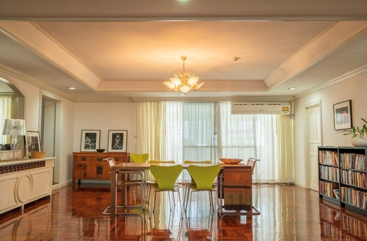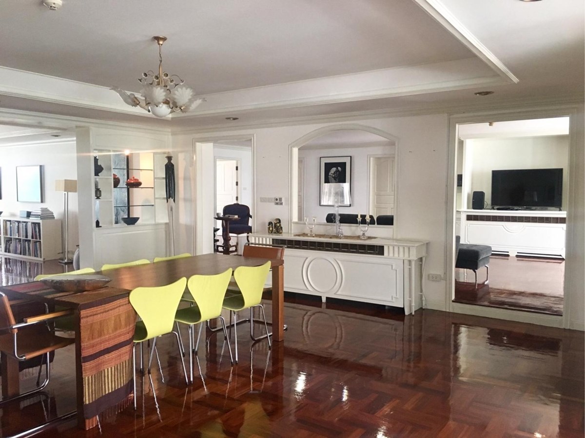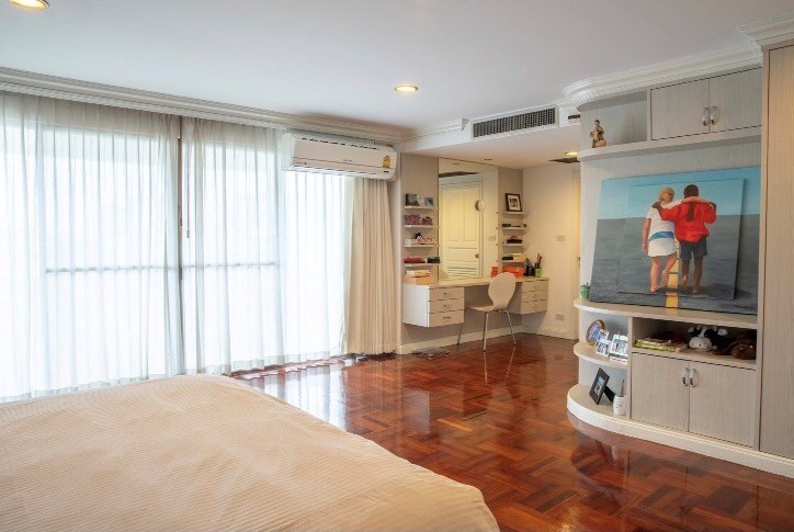 This is a 380 sqm, fully furnished apartment that is available to rent at G.M. Mansion on Sukhumvit 30. The property has 3 bedrooms, 4 bathrooms, living and dining area with balconies, maid’s room with attached bathroom and separate entrance. G.M. Mansion has a swimming pool, gym, playground, sauna, lounge, parking and security service.