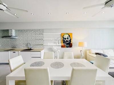 This very spacious, modern, 2 bedroom, 2 bathroom condo has been tastefully renovated to a very high standard and is fully furnished, including built in wardrobes and ample storage space. There is a fully equipped European kitchenette with appliances, an extensive living area, separate dining area, and 2 large bedrooms with fitted wardrobes. The upscale bathrooms are of contemporary, modern design with high quality fixtures and fittings. The unit also benefits from a generous balcony with fantastic sea views which is perfect for entertaining.