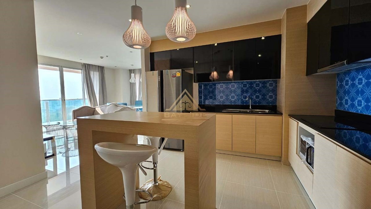This unit is 2Bedroom 2Bathroom and high floor, Luxury style and New room !! living area 92.78 SQM., European kitchen, fully furnished, Flat Screen TV, Cable TV, Dining table, 2 Balconies !! And Beach view !