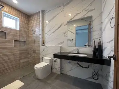 - Master bedroom with a spacious and elegant design, ensuite bathroom with a soothing bath.