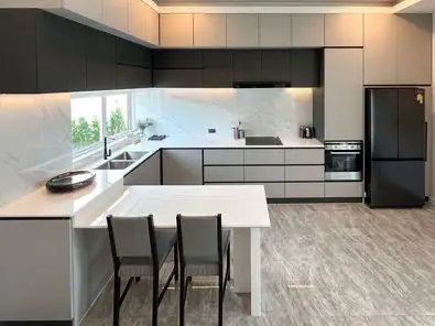 - Generously proportioned living spaces, including a European kitchen and modern luxury living room.
