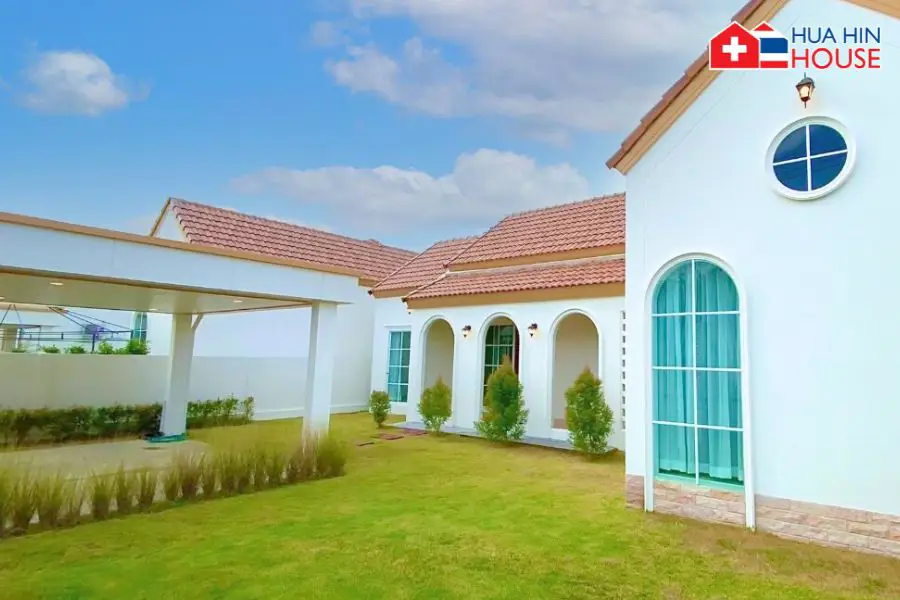 Discover the charm and warmth of this beautifully designed single-story house in minimal style, located in Railand,Nong Khon, Hua Hin. Experience the elegance of Italian architecture with every thoughtful detail. Enjoy the tranquility and simplicity of this luxurious yet inviting home, surrounded by lush green landscapes.