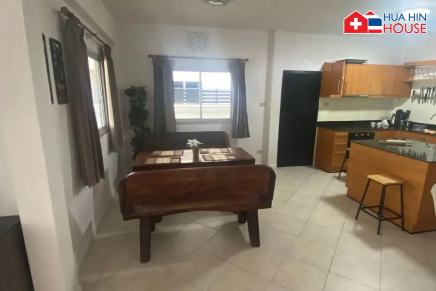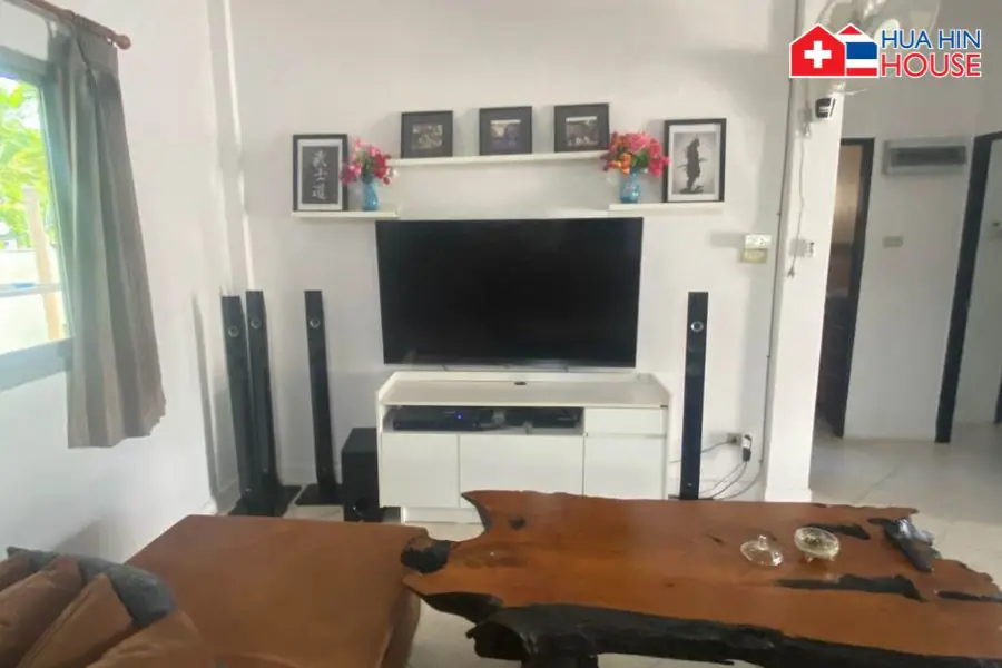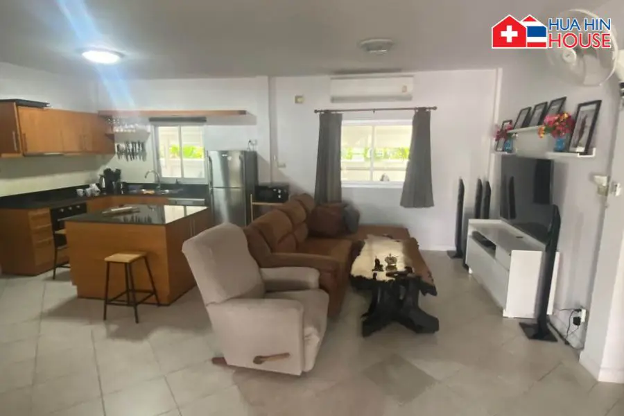 2 Bedrooms 2 Bathrooms Fully Furnished Situated in the popular and very accessible between Hua Hin and Cha-am. Property consists of open plan living, dining and kitchen area. A small well managed and low maintenance garden. The house comes fully equipped with Internet and satellite tv. Surround sound entertainment system and smart tv. The kitchen is fully equipped with Washing machine, dishwasher, fridge/freezer, hob and oven, water cooler, microwave and all crockery, cutlery and glassware.
